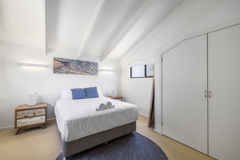 Follow the abundance of light & ocean breezes to the upper level which offers a large kitchen & living area with amazing ocean views. The cozy upstairs living flows out on to the large deck with ample space to entertain or relax & enjoy the view. If you cant leave work behind for your holiday, then this property has you covered with a large study area of the kitchen filled with natural lighting & a picturesque view. The main bedroom is located on the upper level with a queen bed, built in robes & a generous open plan ensuite.
