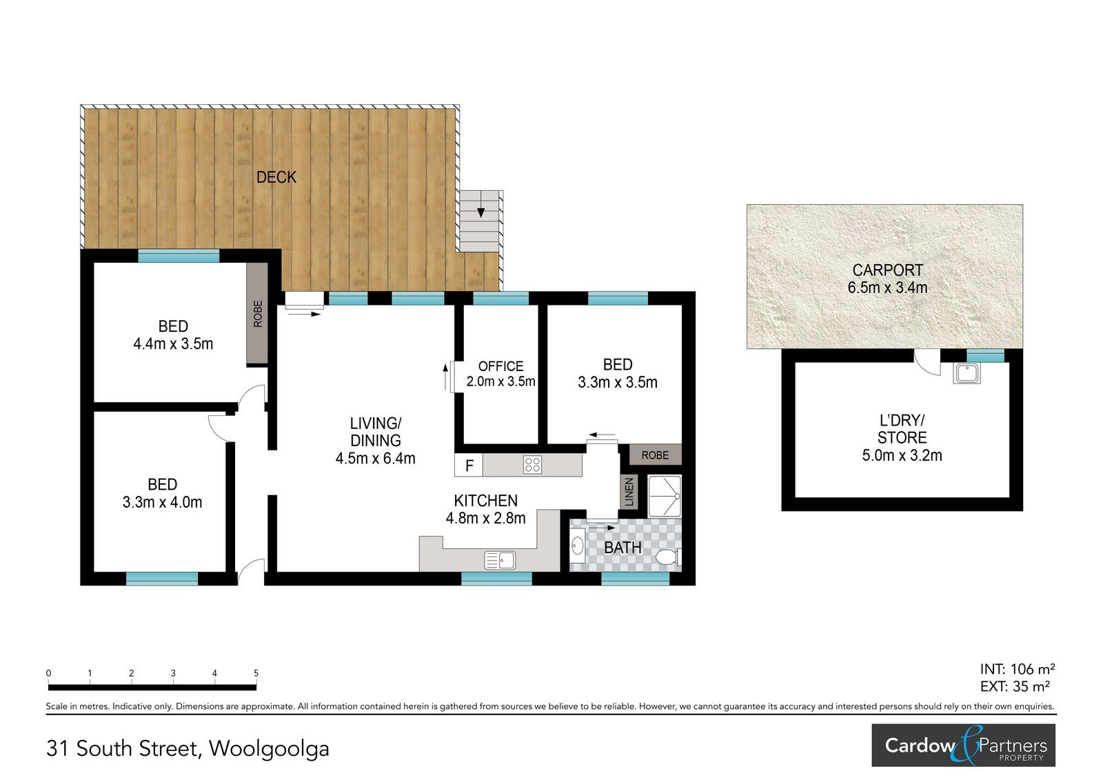 featuring 4 bedrooms, Neat kitchen, dining & lounge with polished timber floors, bathroom with shower, vanity & toilet, large covered north facing deck.