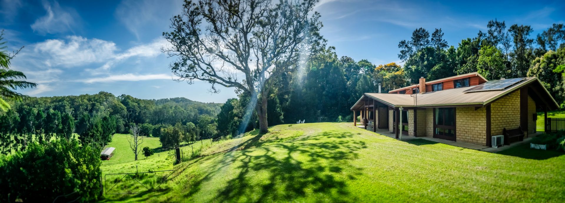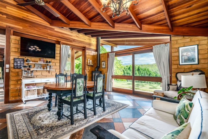 As you drive into the Kalang Valley, you will enjoy the feeling of leaving the rest of the world behind and entering your own private country paradise. The property is easily accessible via a sealed road from Bellingen's town centre. When you arrive, you'll find a comfortable home in a private position, suitable for a large family due to the separated East and West wings. The grand entry, mountain views, architect-designed high ceilings, timber, and lots of windows to allow natural light all combine to create a sense of luxury.