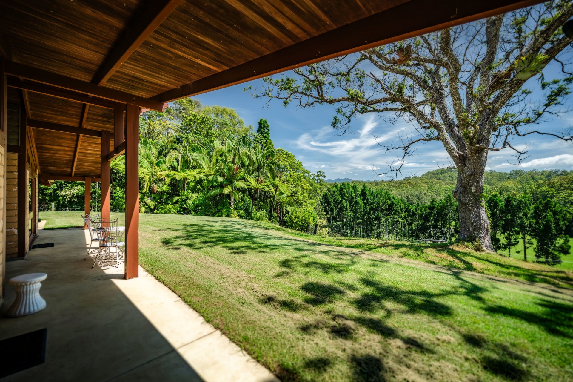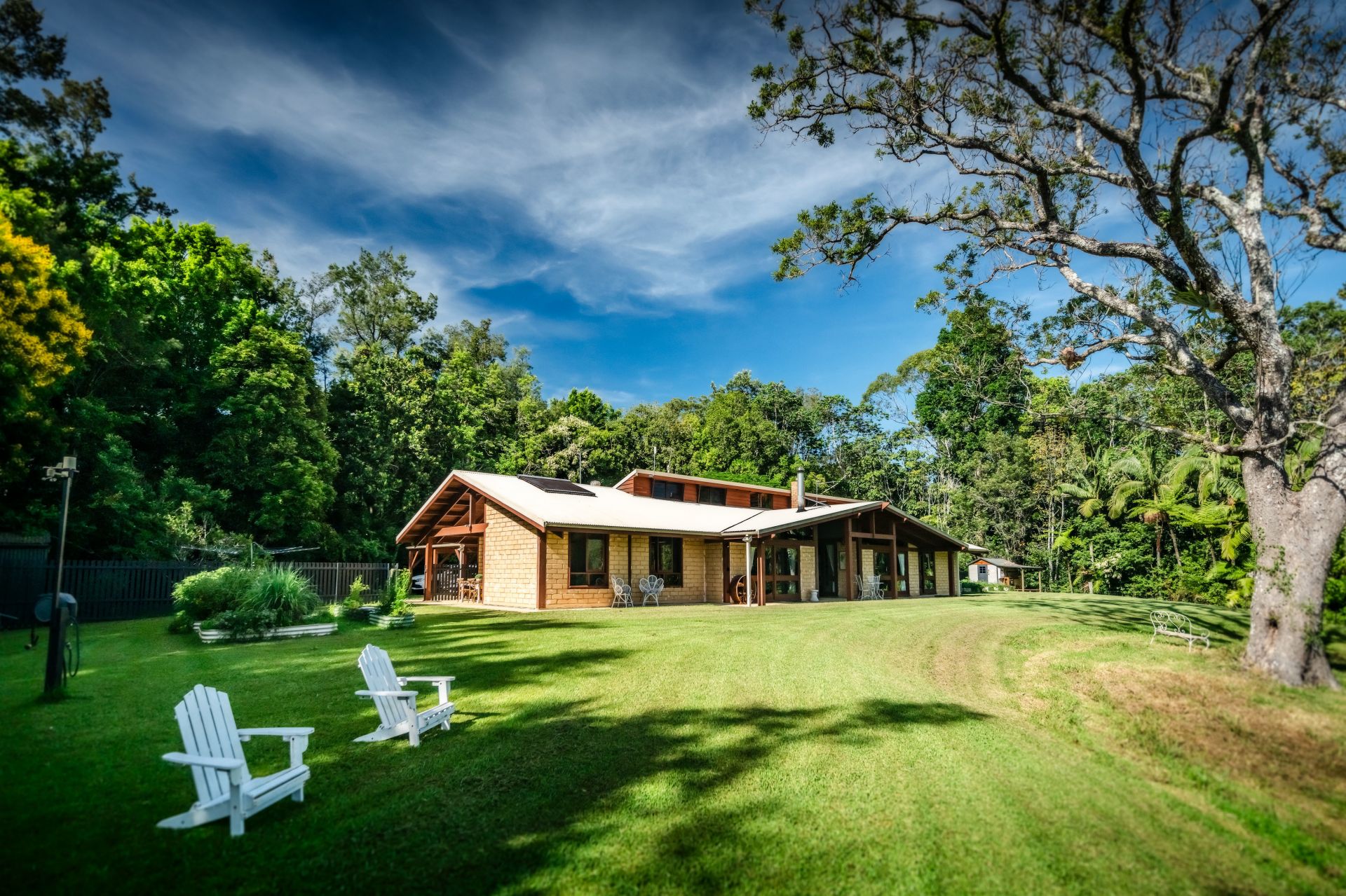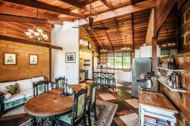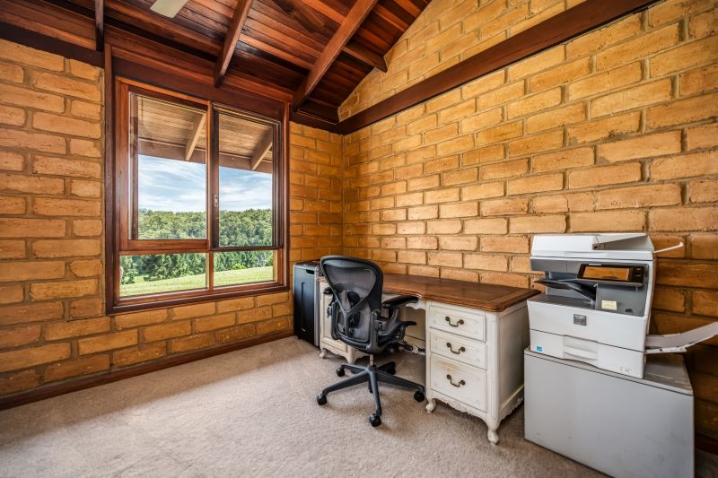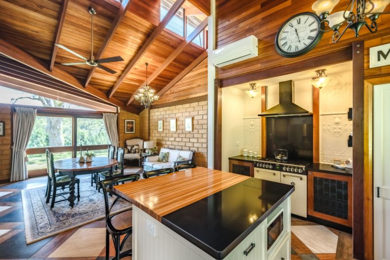 Reverse cycle air conditioning, slow combustion log burners for the cooler months, and ceiling fans throughout the home provide year-round comfort. Outside, there's plenty of space for the kids and pets to run around, and perfect for family gatherings around the fire pit as you watch the sun go down and listen to the orchestra of unique amphibian species. A mature lone red cedar tree provides shade from the northerly aspect in the warmer months and is the perfect spot for soaking up the surrounds of the mountains, rare bird species, and marsupials.