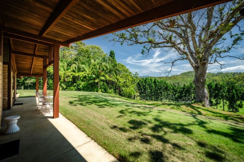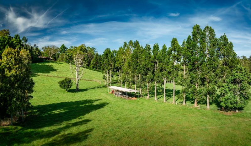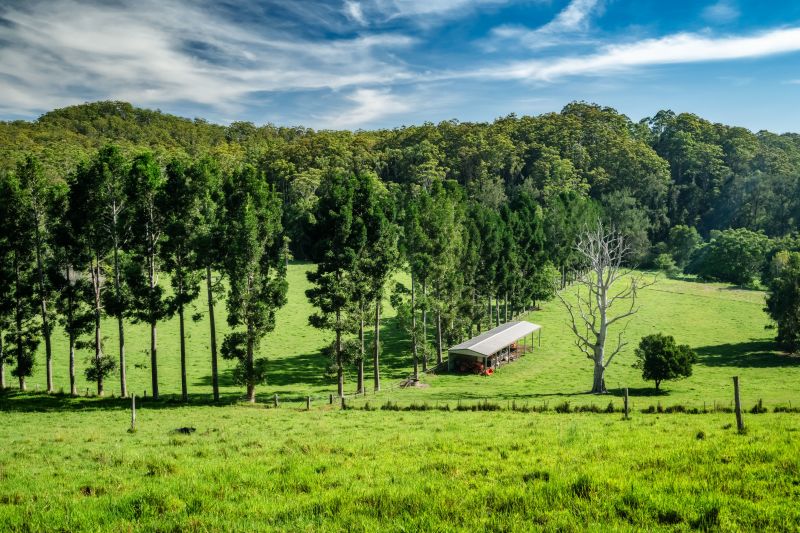 The property is fully fenced, with six paddocks, and further showcases a 1.5kw solar power system, 2 stall stable, tack room, and cattle yards. There is also a well maintained metal stock-yard with new cattle crush and loading ramp. This property is perfect for anyone with an interest in being self-sufficient. It has a large chicken pen, 95,000L rainwater tank for home usage, limitless water from the Kalang River, a large veggie garden with new cedar potting shed, and a 'food forest' that includes jackfruit, banana, Atherton almond, Davidson plum, citrus, and more. The property also boasts its own natural rainforest on the west of the property and is surrounded by mature exotic and subtropical tree species, bunya pines and your own stand of mature QLD Kauri Pines.