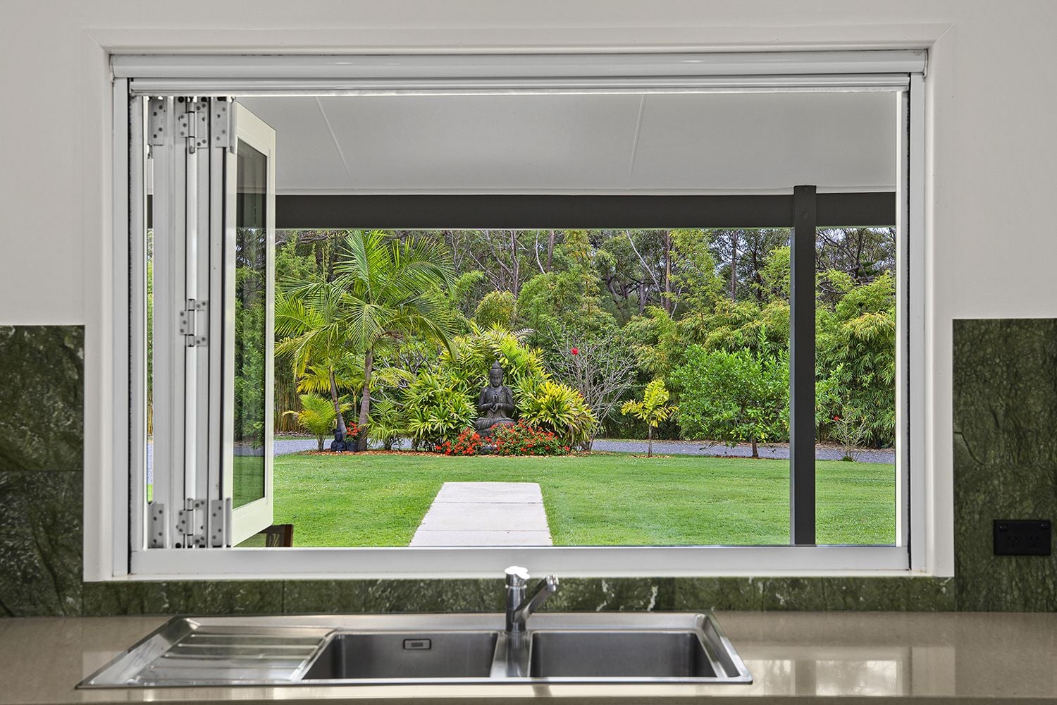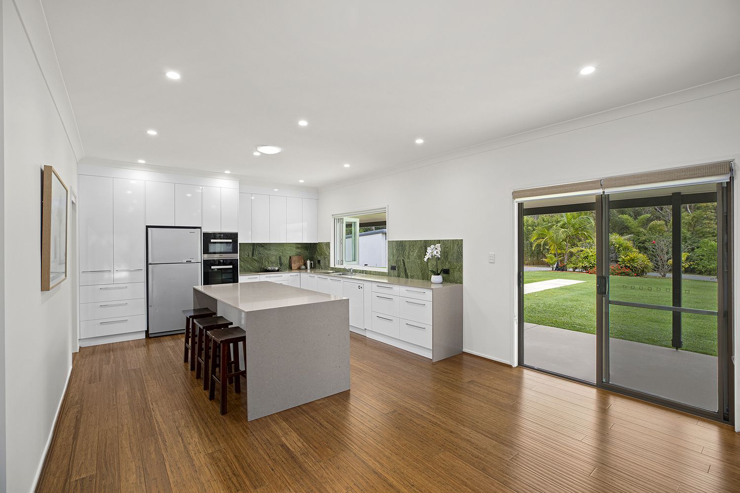 - Modern kitchen with waterfall stone bench tops & quality appliances