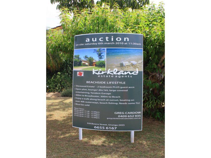 Kirkland Real Estate Urunga have been instructed to Auction this neat home at sought after Mylestom. The home features 2 bedrooms PLUS Guest accommodation, open plan kitchen, dining, lounge, huge covered entertaining porch within a secure courtyard, large tandem 2 car garage and landscaped grounds. Ideal investment home, holiday house or permanent place to live. Imagine a home where there is only 400m between you and the tranquil water of the Bellinger Broadwater and just 300m from kilometres of White Sandy Beach. Enjoy fishing, sailing or boating on over 40k waterways - enjoy an early morning surf, beach fishing or a leisurly walk along the beach at sunset. It's all available from this rare site. The home needs some TLC, renovate to add value and reap the rewards. Deceased Estate and instructions are to sell on the day. Land 669m2
