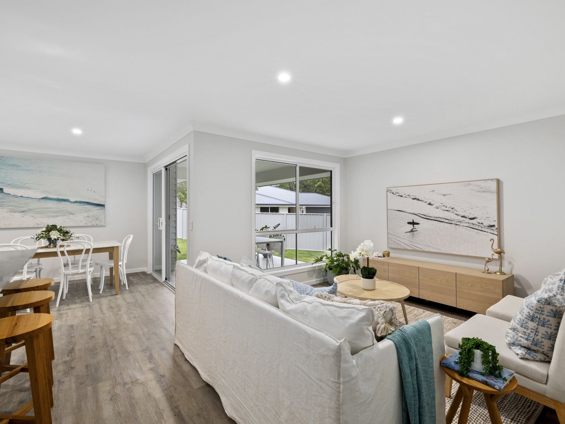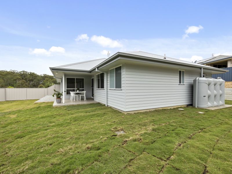 This delightful four bedroom, two bathroom single level home is six months old and only a 1300 m walk to the beach. Offering; open plan living that opens to a covered alfresco area, robes in all bedrooms, double lock-up garage with an auto door and direct access into the house. Fully landscaped with concrete sleepers and extensive drainage, side yard access with room for boats, trailers and there is room for a pool. Energy-efficient features include a 5,000L rainwater tank with an electric pump and insulation in the walls and ceilings. Situated in beautiful Valla Beach and within 300mtrs of the cafe/general store and Tavern with restaurant, and walk to swimming estuary. All this and just 10 km to Nambucca Heads, and within 40 km to Coffs Harbour airport. All that needs to be done has been completed, and with the house still as new, there is nothing left to do but to move in and enjoy the beachside lifestyle.