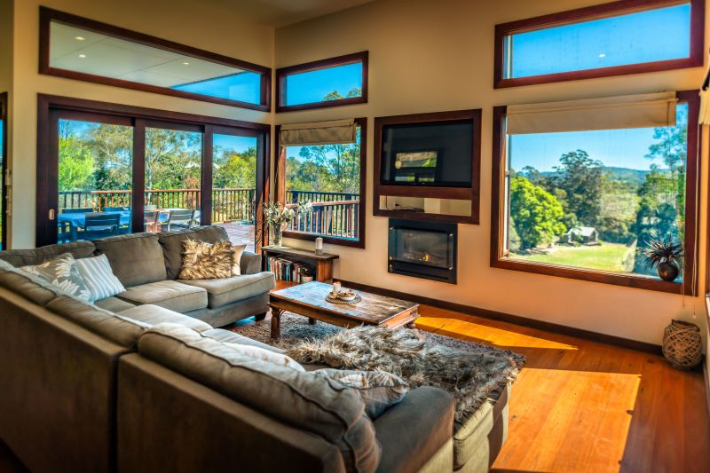 Defined by privacy space and stunning vistas, this simply sensational property offers direct river access just moments from pristine beaches. The home has been superbly designed and crafted from quality materials, with vast open plan living areas, designer kitchen and bathrooms, built-in gas fireplace, air conditioning and exceptional decks. The elevated position perfectly captures intimate views over the property to the mountains. Located near the water's edge is the versatile self-contained boathouse/studio, which is complete with two rooms, a wood fire, kitchenette, air conditioning and a separate bathroom wing. A boat ramp positioned on man arm creek gives direct access to the Bellinger River. You can fish, crab, ski, or take a healthy relaxing kayak to either the ocean, Urunga, Mylestom or vibrant Bellingen for a Coffee. This extraordinary property represents outstanding value in a highly sought after location.