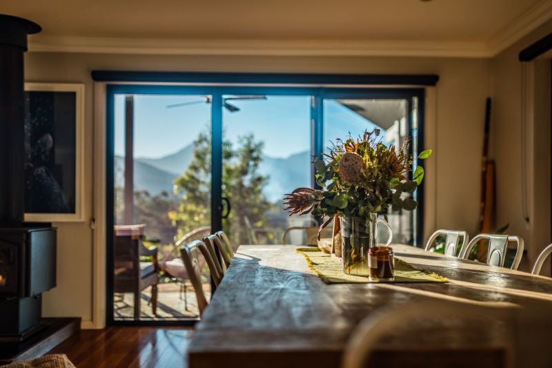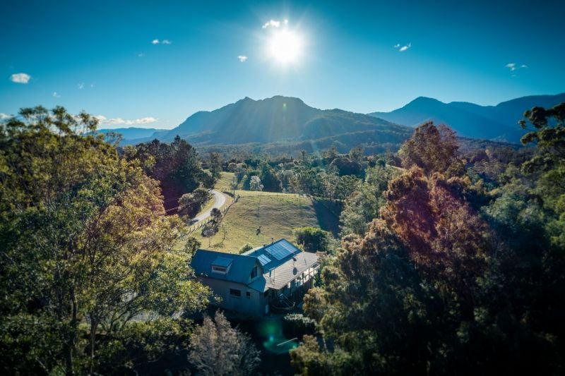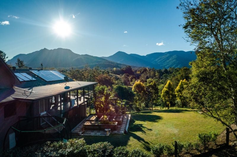 Welcome to Gleniffer, a dress circle location with one of the most spectacular views in the Bellingen region looking across the undulating pastures towards the mountains of Gondwana National Park and Old Man Dreaming by day or night. This enviable elevated family home is set over three levels on 2.027ha. It features three bedrooms, a master with a walk-in wardrobe and en-suite, a separate bathroom, ample storage on the refurbished lower level and a separate laundry. The spacious open-plan layout takes advantage of the abundant natural light and views whilst featuring a modern stone kitchen with premium Miele appliances, it even has a built-in coffee machine. The dining/lounge has a slow combustion wood heater and the house has reverse cycle ducted air conditioning, seamlessly integrating internal living with the outdoor alfresco entertaining area, a wonderful place to dine with family and friends. So much of this property is the beautiful grounds, with a recently completed large stable, great chicken hut and yard, extensive fruit trees and fenced paddocks allowing for cattle, horses or any small farming venture. This home is 7 minutes from Bellingen CBD, renowned for the array of coffee shops, restaurants, arts, music and village lifestyle or a short drive to surf beaches. Call today to inspect.