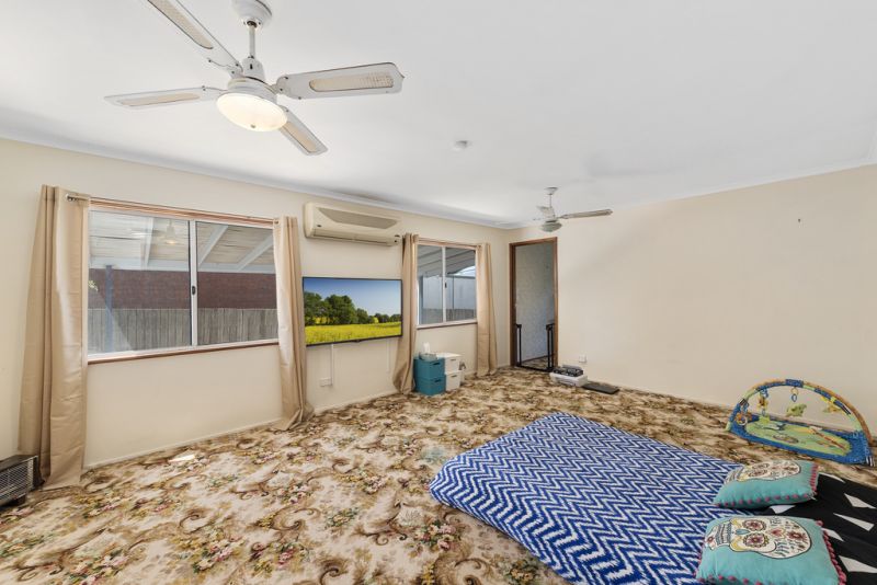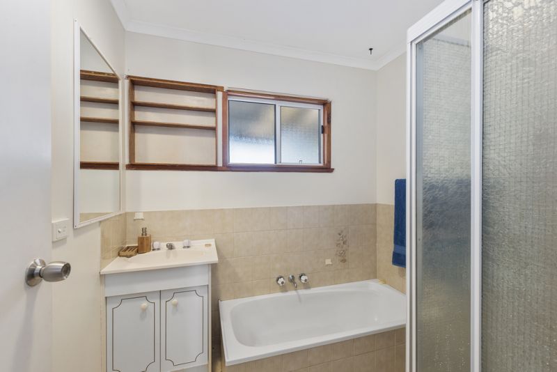 The main bedroom is huge with built-ins & wc with enough room to make a full en-suite. There's a neat full bathroom, and a separate toilet. Outdoor living is catered for with a wide bullnose front verandah & partially covered huge back deck. The yard is fully fenced with two garden sheds & grassy front & back yards.