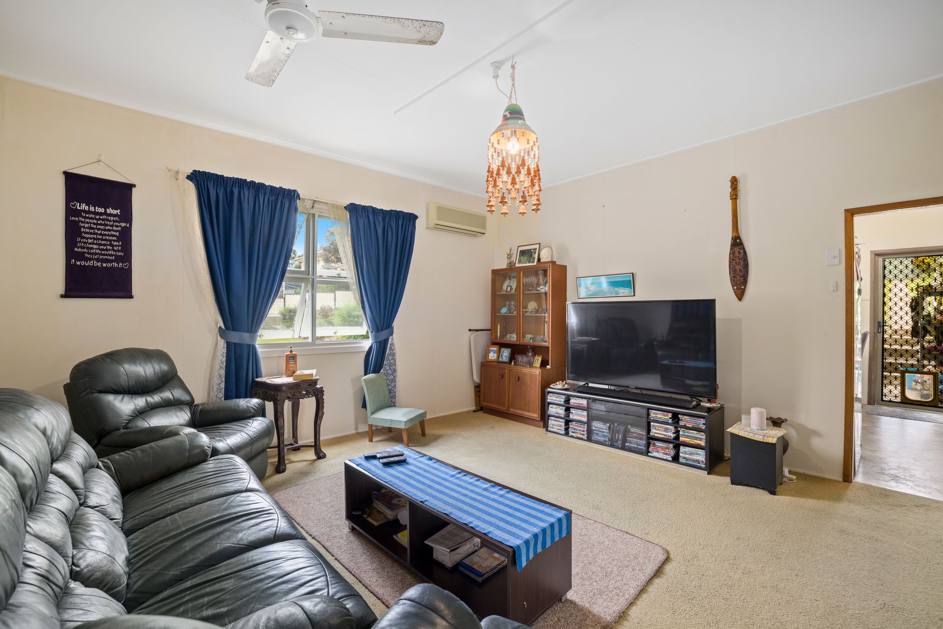 Tidy 2 bedroom house plus sunroom overlooking the golf course, good sized kitchen, lounge room with air conditioning, combined bathroom/laundry, rear covered sitting area, walk to town centre, single lock up garage. Pets on application