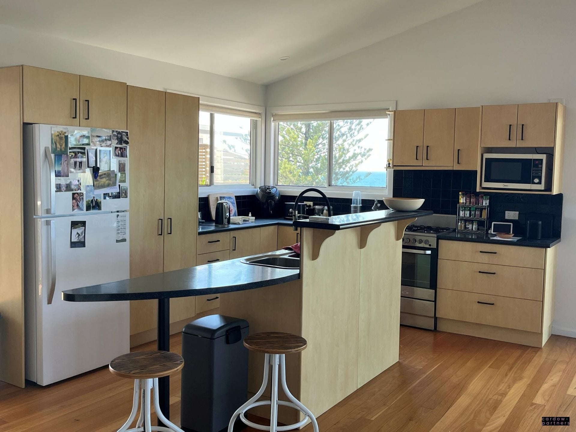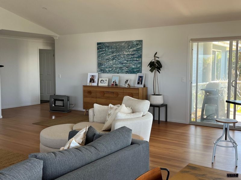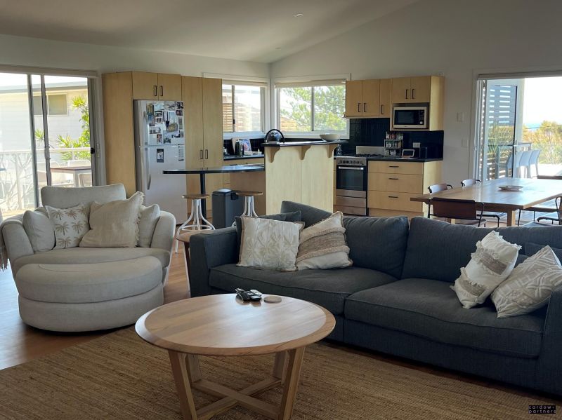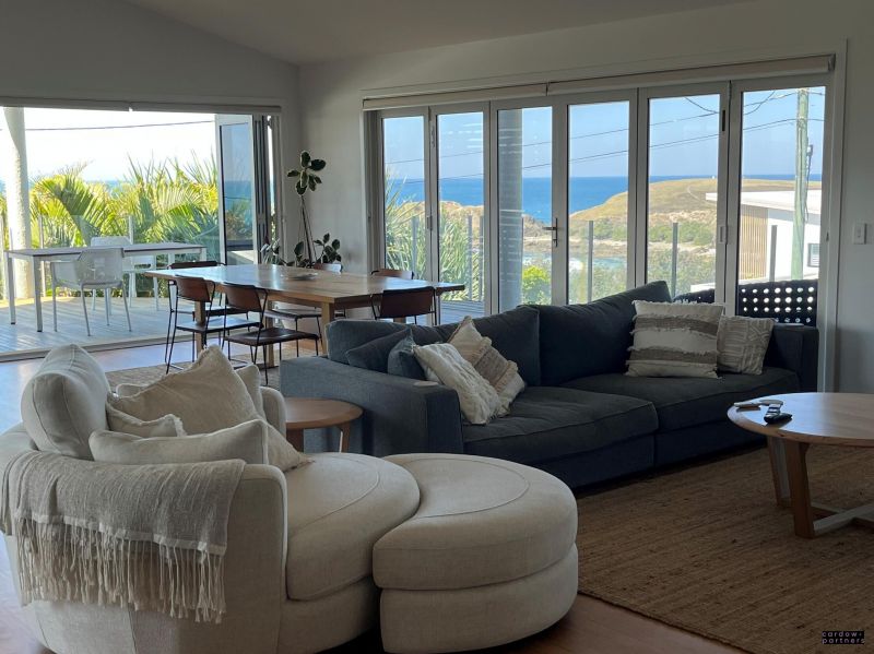 This beautiful home features a large open plan kitchen/living area with polished timber floors and magnificent ocean views to the South East with bi-fold doors opening out to a large balcony.