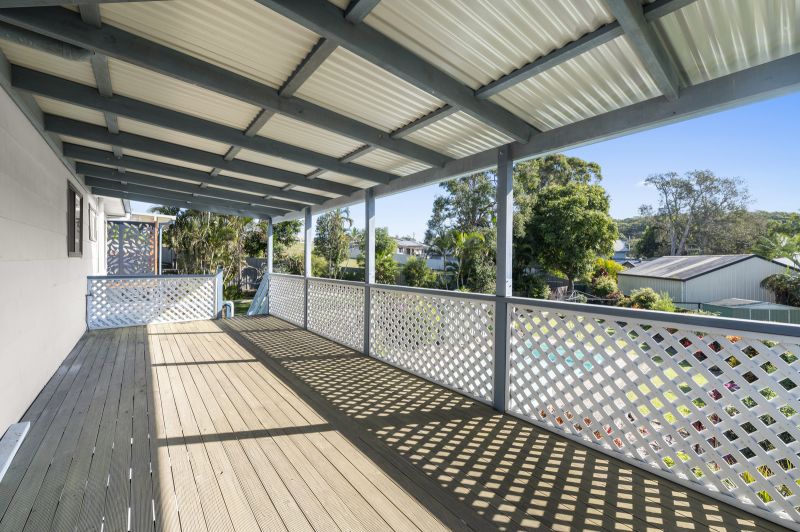 Established family home in beautiful Emerald beach APPROX 850m walk to the beautiful beaches. Sitting on a 733m2 block with a big backyard, pool, and shed; this home feels private. A large deck wraps around the north eastern and back of the house with entrance from the main bedroom, this allows great natural light and a lovely view of the pool and back yard.