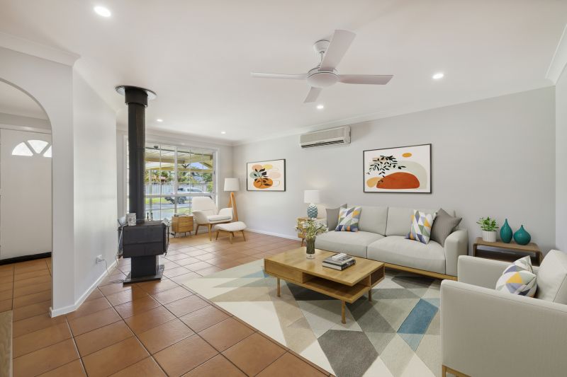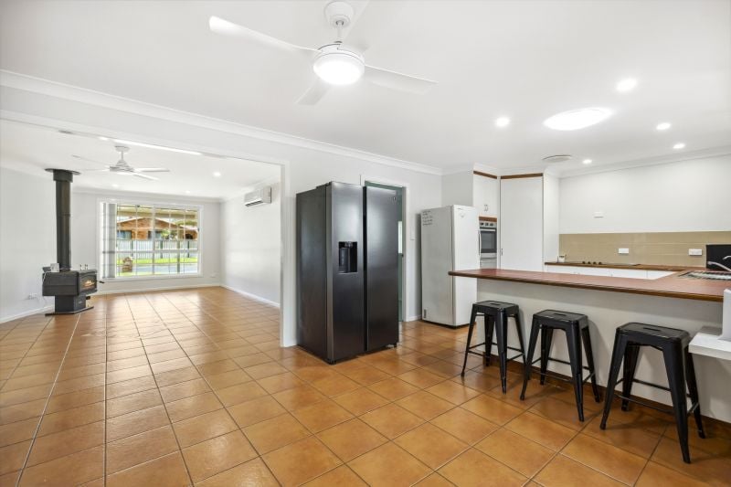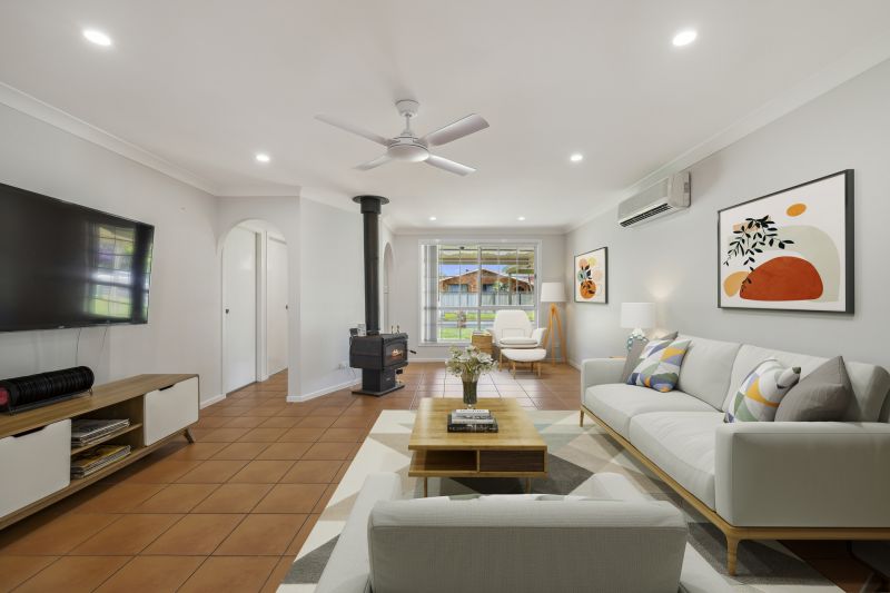 From the street you will notice the lovely well-maintained lawns sprawling across 740sqm of level land. Inside, the inviting home offers a spacious living area, complete reverse cycle air conditioning and cozy wood heater. The functional kitchen is equipped with ample bench space, dishwasher, electric oven and cook top. There is a handy servery window & sliding glass door to access the large north facing sunroom, that is perfect for entertaining or second living area for the teens to retreat.