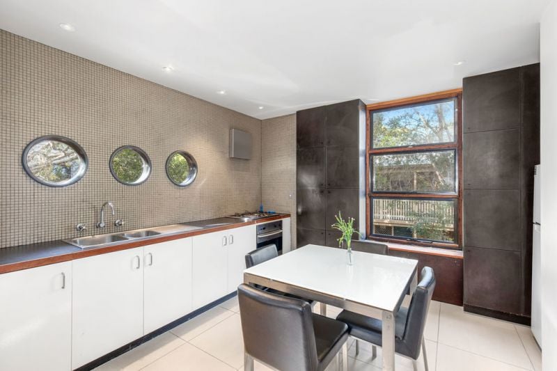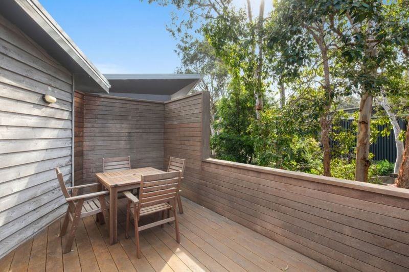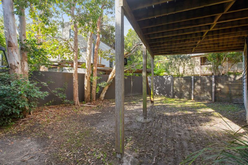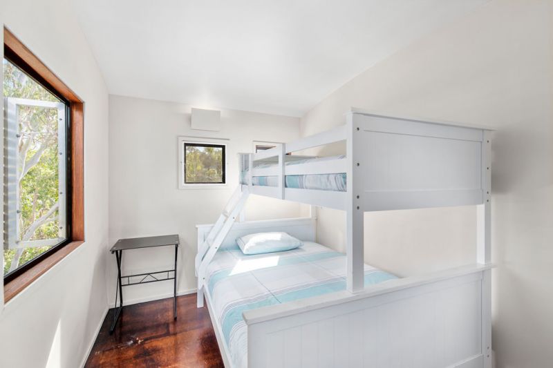 Nestled between the gum trees of the bustling suburb of Emerald Beach This completely detached architecturally designed house is the unique holiday you have been looking for. This split-level home sleeps 5 comfortably. Step into the spacious lounge room when you first enter the house and continue through to the lovely open deck with a wooden table setting ready for all your meals or just a morning cup of tea tucked up in the trees. Step down to sunken kitchen/ dining with three porthole windows looking out to the trees.