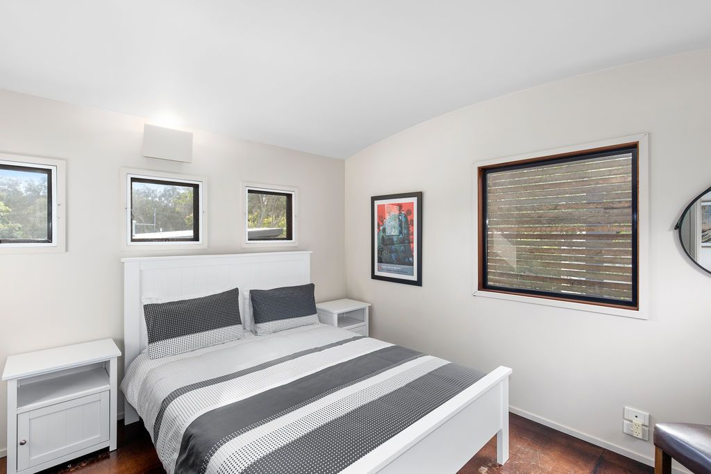 With two bedrooms on the second level the master has a queen size bed and the second bedroom consists of a triple bunk bed. Both rooms take advantage of natural light with windows on three sides.