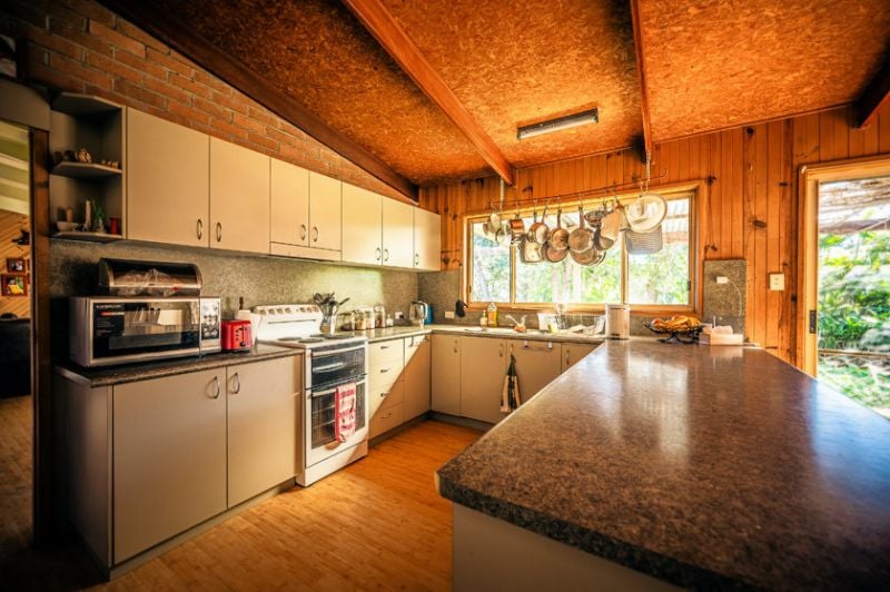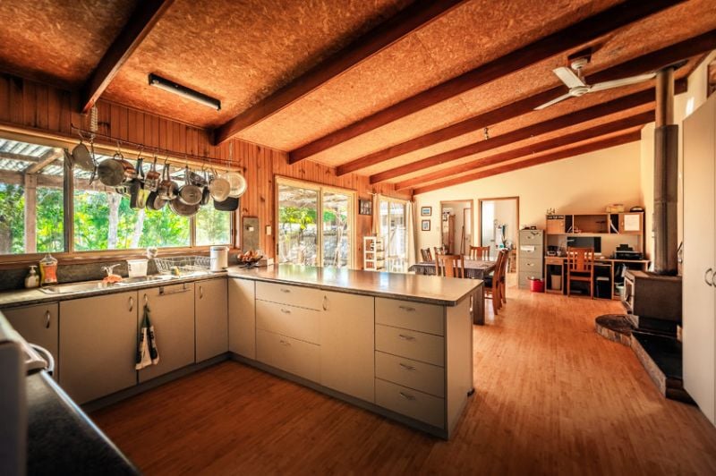 The kitchen offers plenty of cupboard and bench space, 4 door pantry, electric cooktop and oven and a double stainless steel sink. The kitchen is centrally located between the living and dining areas and the slow combustion log burner does a great job of making it warm and cosy on those cool winter nights.