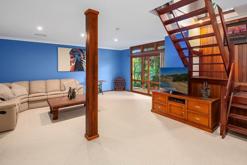 The dual level residence offers superb craftsmanship with timber features, high cathedral ceilings, large covered around verandah and a secluded back deck that leads to the sparkling in-ground pool and pergola area.