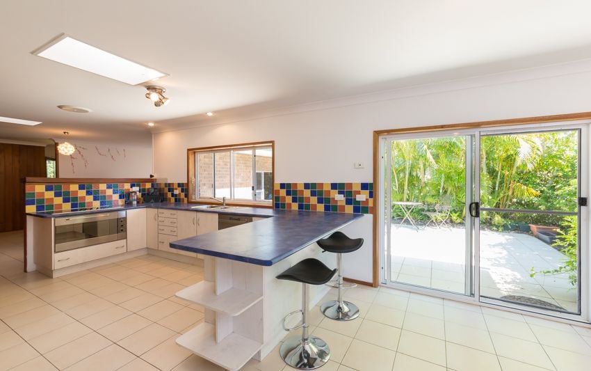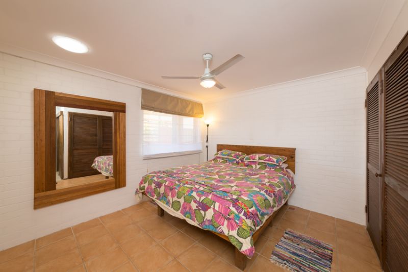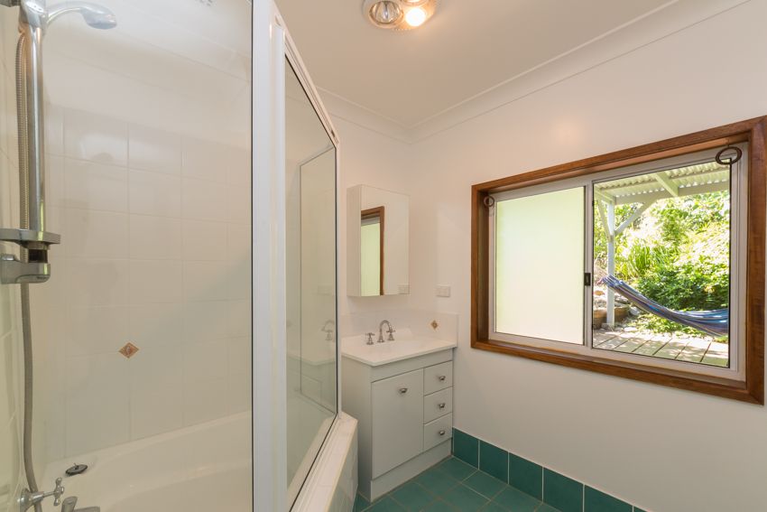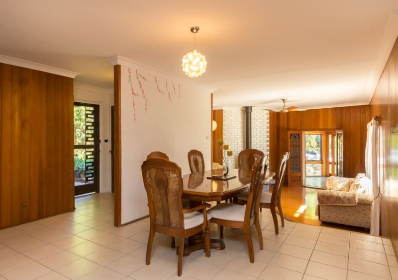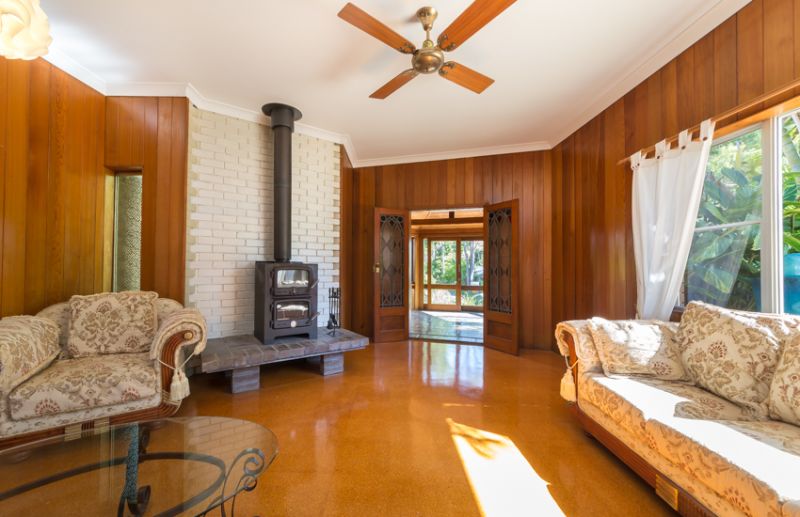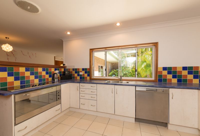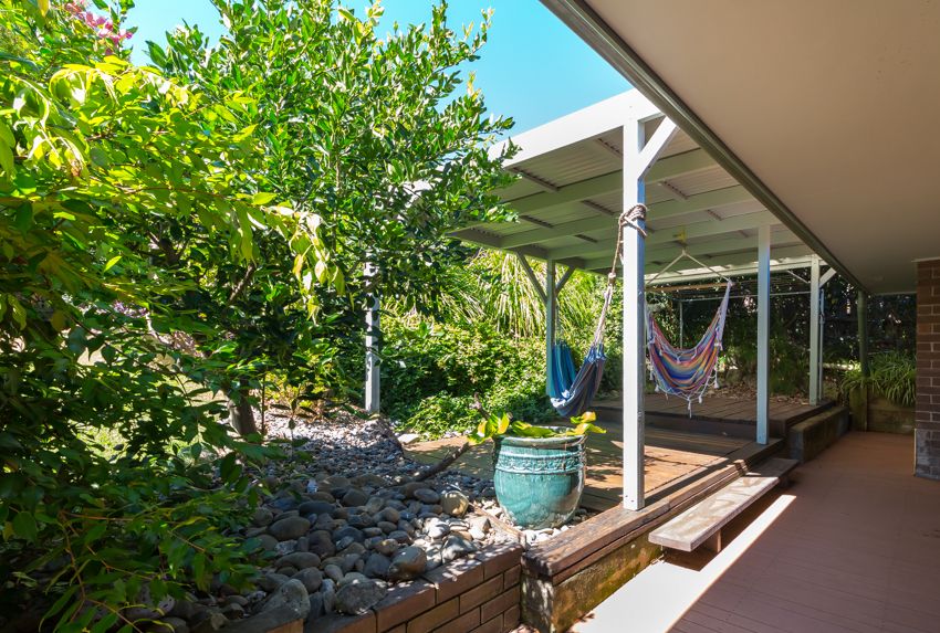 A private retreat has been lovingly created in beachside Safety Beach. This north facing double brick split level home has its own unique style, with extensive use of timber, throughout the formal & informal living areas as well as the front sunroom. These living areas designed to harvest summer shade or warm winter sunshine. The master bedroom ensuite has been recently renovated, with the main bathroom adjacent the two double bedrooms. The generous chefs kitchen overlooks a private tropical terrace & features a 900 cooktop & oven, lots of cupboard space & a sunny morning room. Other features of this unique home are, skylights, ceiling fans, solar hot water, leadlight doors, & a Nectre fuel stove with an oven & hotplate that supplies winter warmth to the main living room. From the street a native front garden has been created to attract bird life & a frog habitat pond established. The charming back garden has a tropical style gazebo, brick garden shed/cubby house & lush tropical gardens interspersed with many fruit trees, & a herb & vegi patch. There is dual street access with a gate to the quiet street that joins the walking track to Safety Beach & Woolgoolga Lake.