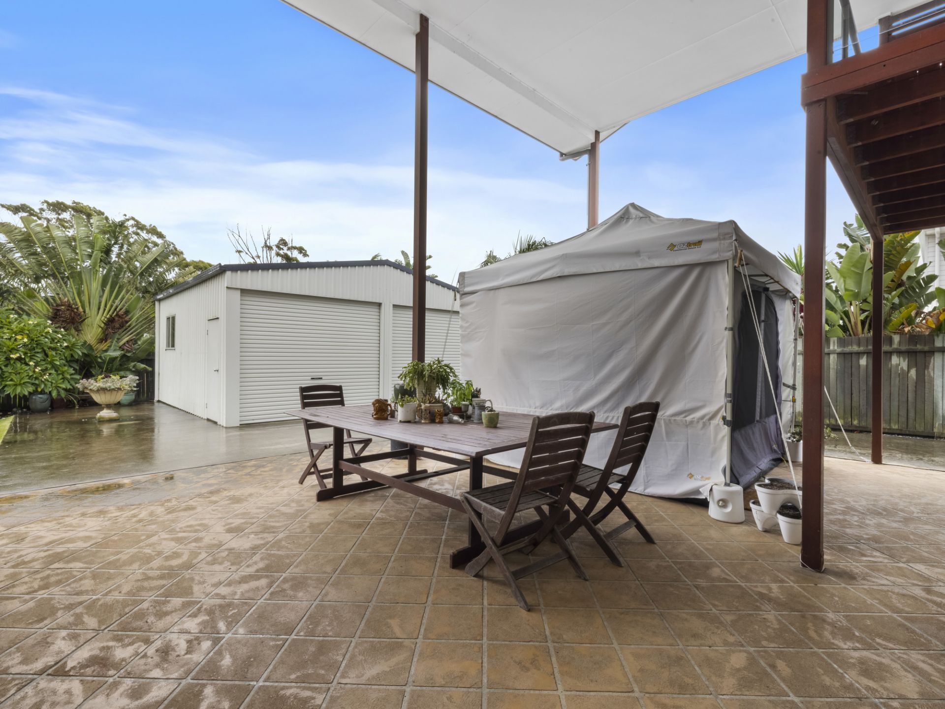 A large 9 x 9 colourbond shed offers, boat & caravan owners, safe & secure garaging & there is plenty of room for workbenches & storage.
