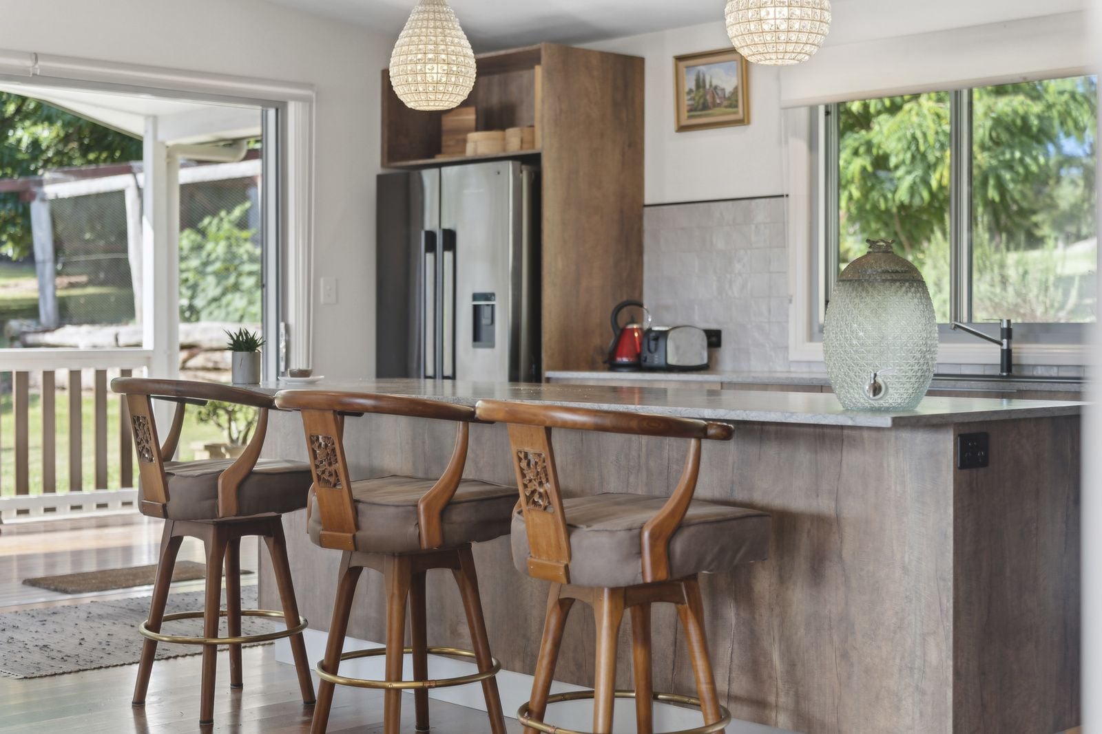 This stunning 5.6-acre riverfront property features a beautifully renovated home and is conveniently located just 3.5 km from town. Surrounded by lush countryside, the location offers sweeping views and is highly desirable. The property includes an elevated private homesite, a separate Colorbond shed that houses a music room, and an additional studio perfect for guests. With river frontage along the Kalang River and deep freshwater swimming holes, you can enjoy relaxing afternoons by the river, shaded by river oaks adorned with stag horns. This property is ideal for keeping a couple of cows, growing vegetables, or simply enjoying the rural lifestyle.