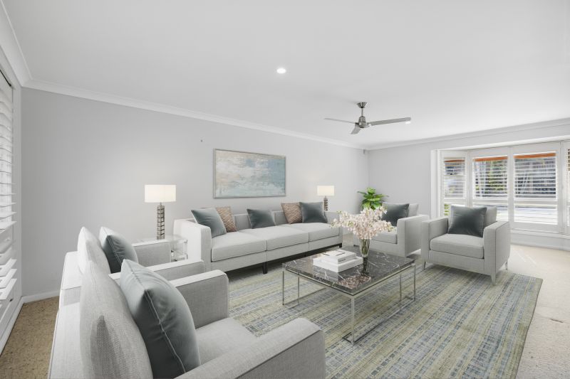 The convenient single level home comprises of 4 bedrooms, all with built in robes & ceiling fans, Master bedroom with water views, private ensuite & air conditioning. The functional floor plan offers space and privacy with 3 separate living areas, from the formal lounge/dining room, to the rear sunroom or the spacious open plan kitchen/dining area complete with reverse cycle air conditioning for extra comfort.