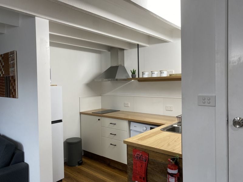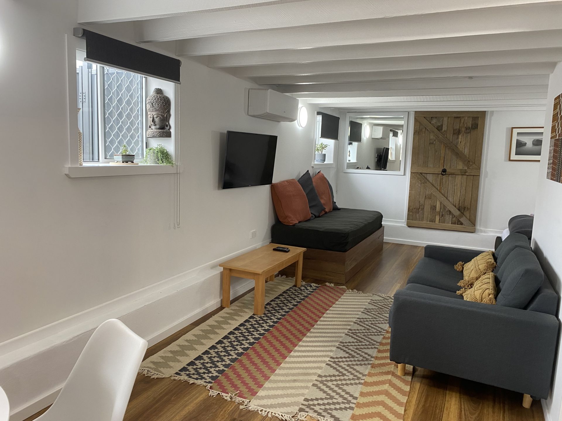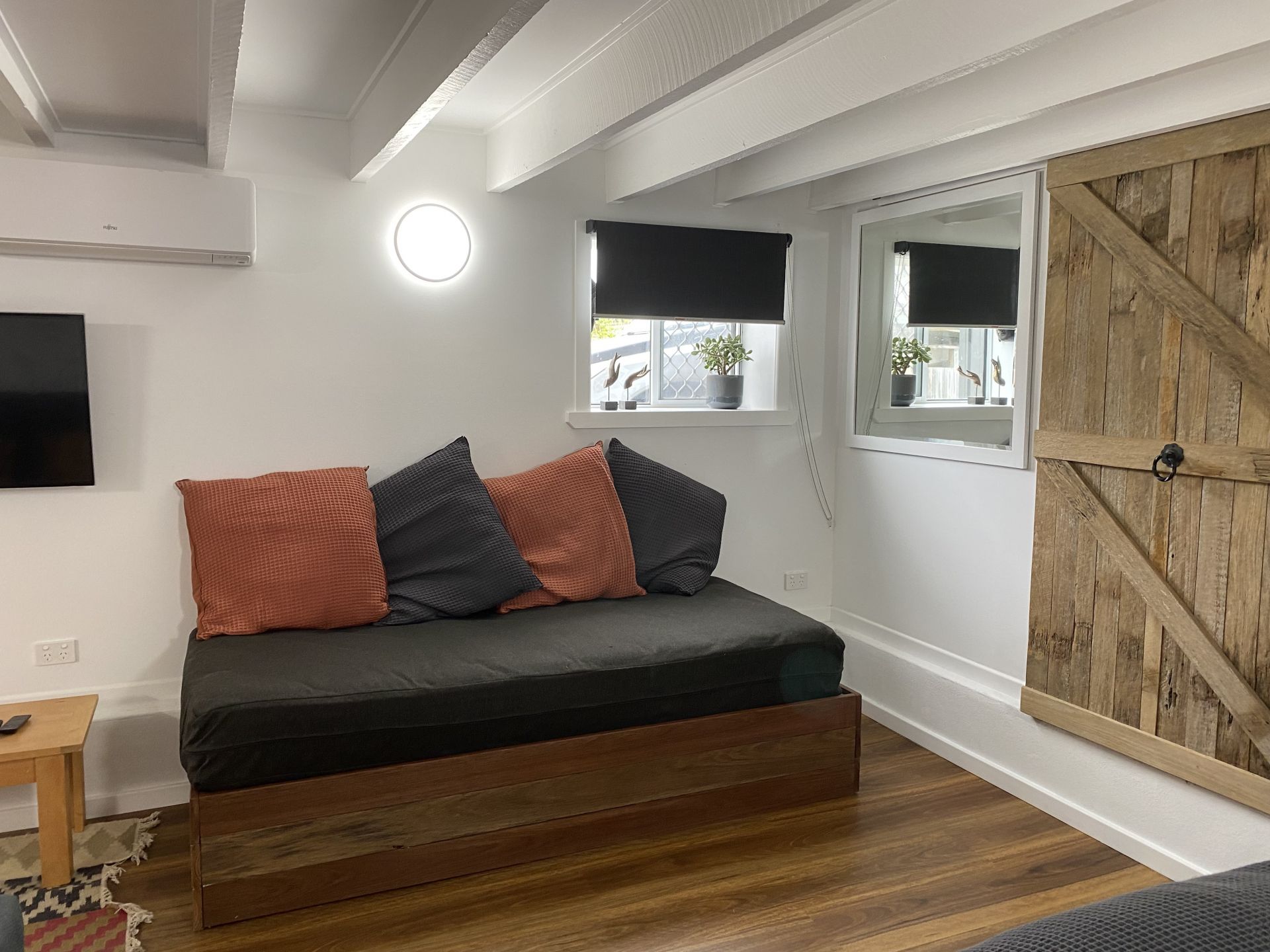This very neat fully furnished studio features bedroom area, kitchenette with washing machine, living area, separate bathroom, outdoor area.