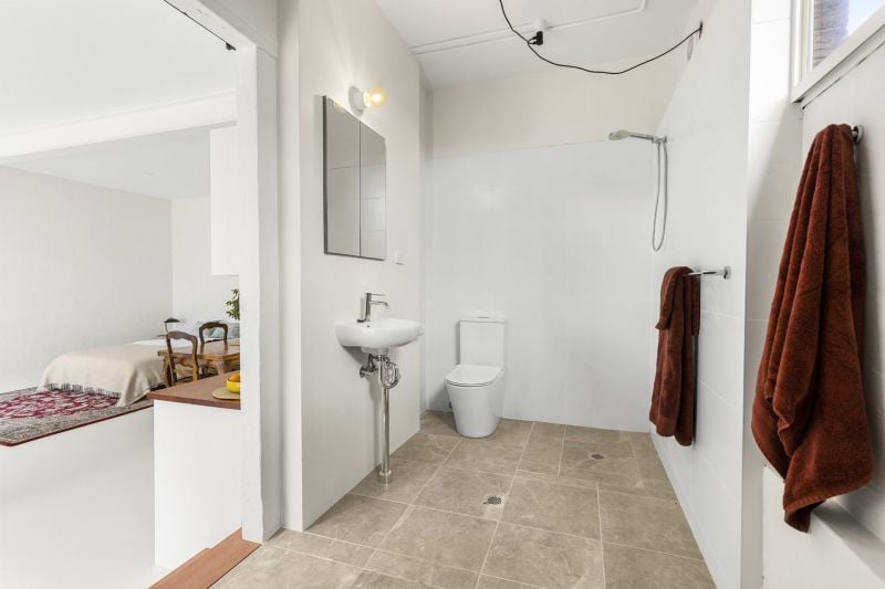 * The bathroom features a bath tub, large mirror, separate toilet (with easy plans to create a master ensuite and separate bathroom upstairs if required).