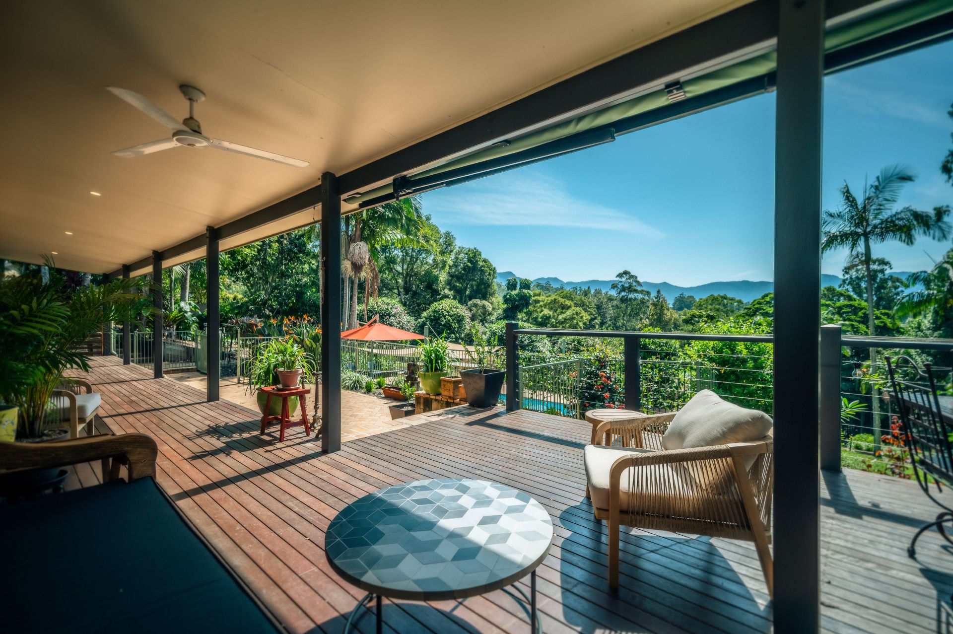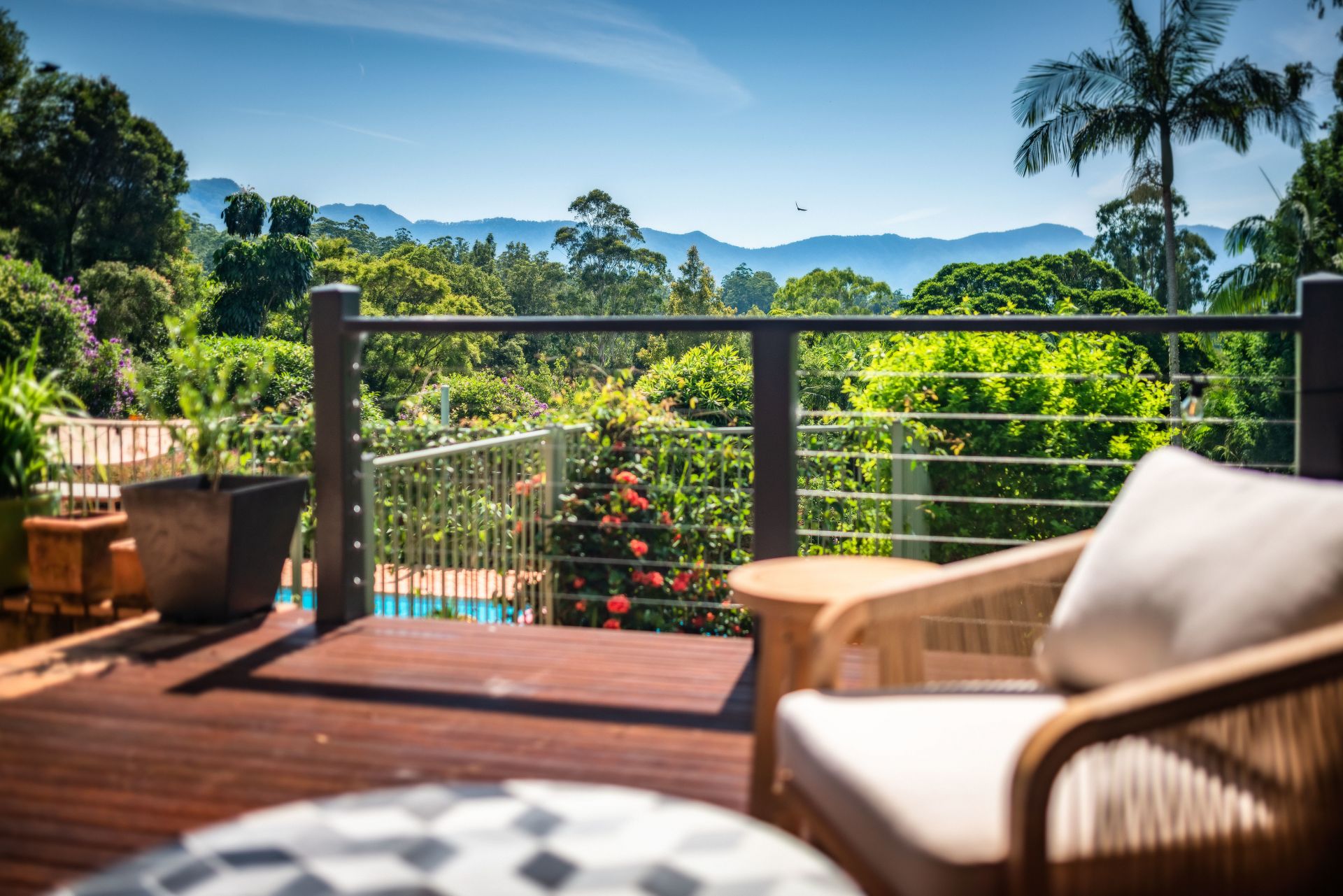 Facing North East the hardwood deck is superb, creating an outdoor space overlooking the pool to the dramatic backdrop of the Dorrigo Mountains. Just too good to ever leave, open yet private. A clever design to take full advantage of the position