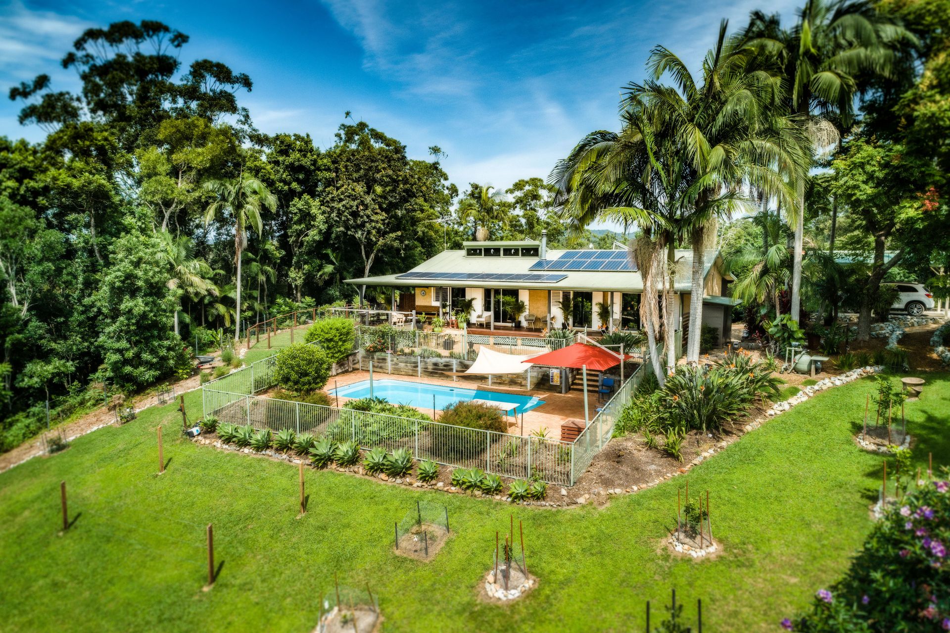 A solar system with 3 batteries, and a variety of garden beds and fruit trees allow you to create your self-sufficient haven. And importantly, you have water security galore! With 4 rainwater tanks, a bore with excellent quality water sourced direct from Dorrigo National Park. There is even a little storybook creek at the bottom of the property.