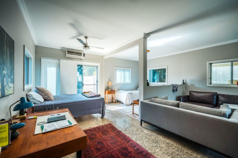 Separate improvements consist of a carport, double garage plus an air-conditioned Pilates studio. Another big bonus is the renovated separate guest studio, complete with bathroom/kitchenette/air conditioning and a wonderful screened sitting room with plantation shutters