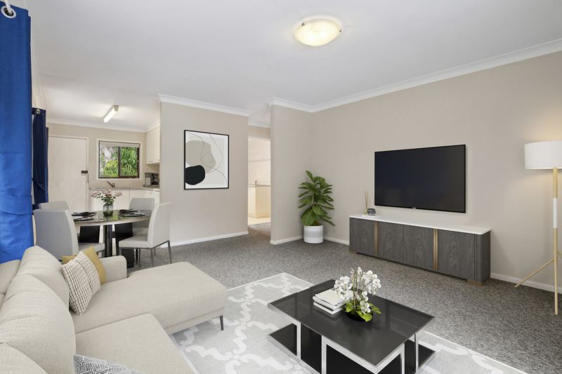 Inside, the unit features a practical and comfortable layout. The open-plan living and kitchen area provides a welcoming space, while the tidy kitchen ensures functionality. There are two bedrooms, with the main including built-in robes for added storage. Carpeted throughout, the home is designed for low-maintenance living. The combined tiled bathroom and laundry maximize space efficiency, making daily life easy and convenient.