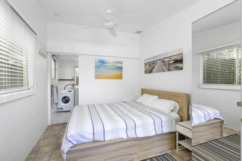 Market street beach bungalowâs location cannot be topped â head in 1 direction to the quiet Woolgoolga âback beachâ and walk in the other direction to the popular Market Street strip of cafes and restaurants. This quaint 1-bedroom unit will be your home away from home during your holiday to Woolgoolga! A perfect stay for a couple looking to get away for a holiday; with a queen bed, bathroom, laundry and courtyard.