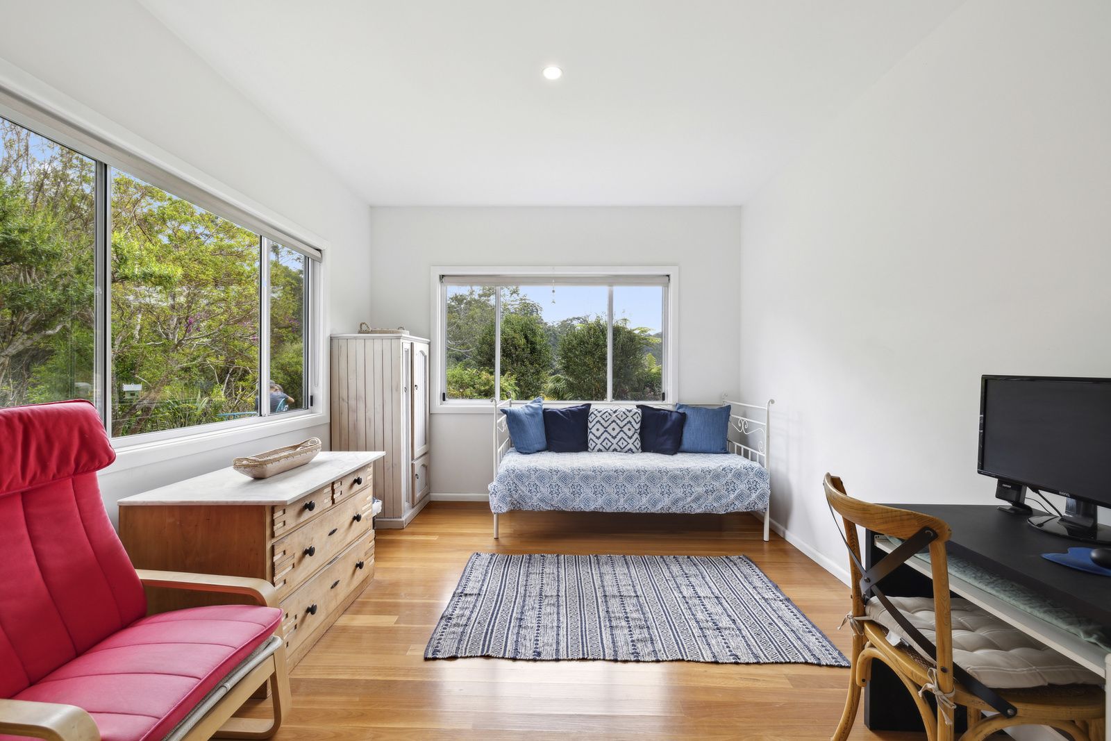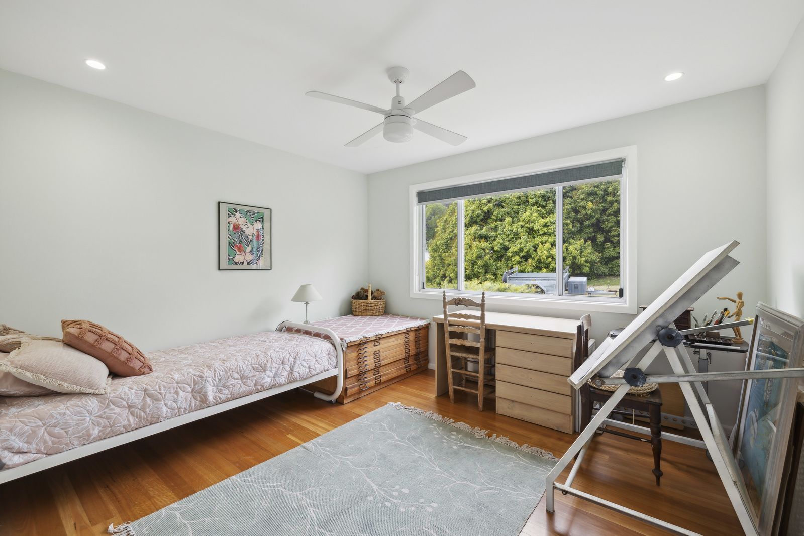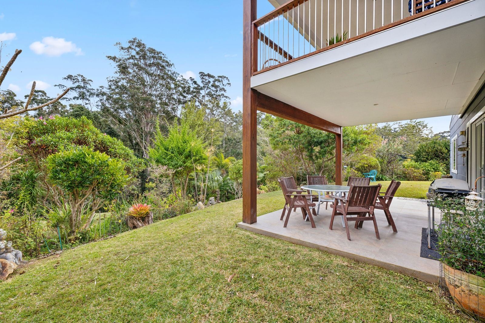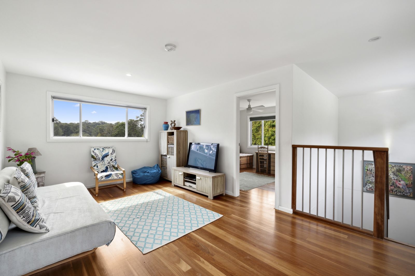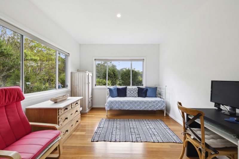 Upstairs, the main bedroom offers ample space, a built-in robe, an ensuite, and a large balcony with a delightful view of the forest. There is also a second bedroom and sitting room, perfect for guests.