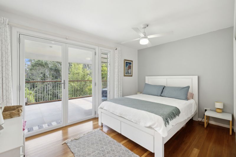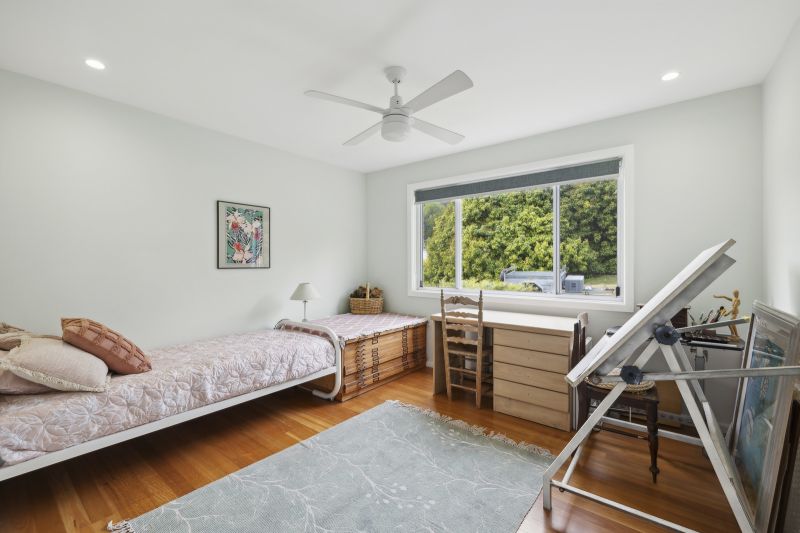 This secluded home is nestled among lush gardens, offering a tranquil retreat just 10 minutes from Valla Beach. The property sits on 6.1 acres of land, with half of it cleared and the rest covered in lush forest. Downstairs, there are two bedrooms and a study (or three bedrooms), boasting polished timber floors and high ceilings. Upstairs, you'll find the master suite and another bedroom. The home has been well maintained by its current owners and is ideal for those seeking a self-sufficient lifestyle.