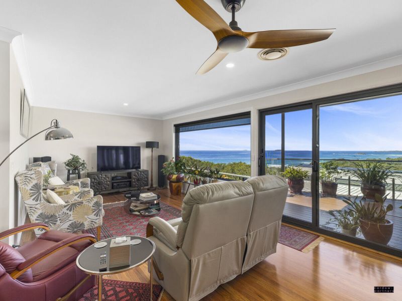 Positioned in a quiet street atop Woolgoolga's sought-after headland, this impressive family home captures breathtaking ocean, island and hinterland views from multiple vantage points, delivering the coastal lifestyle so many dream of.