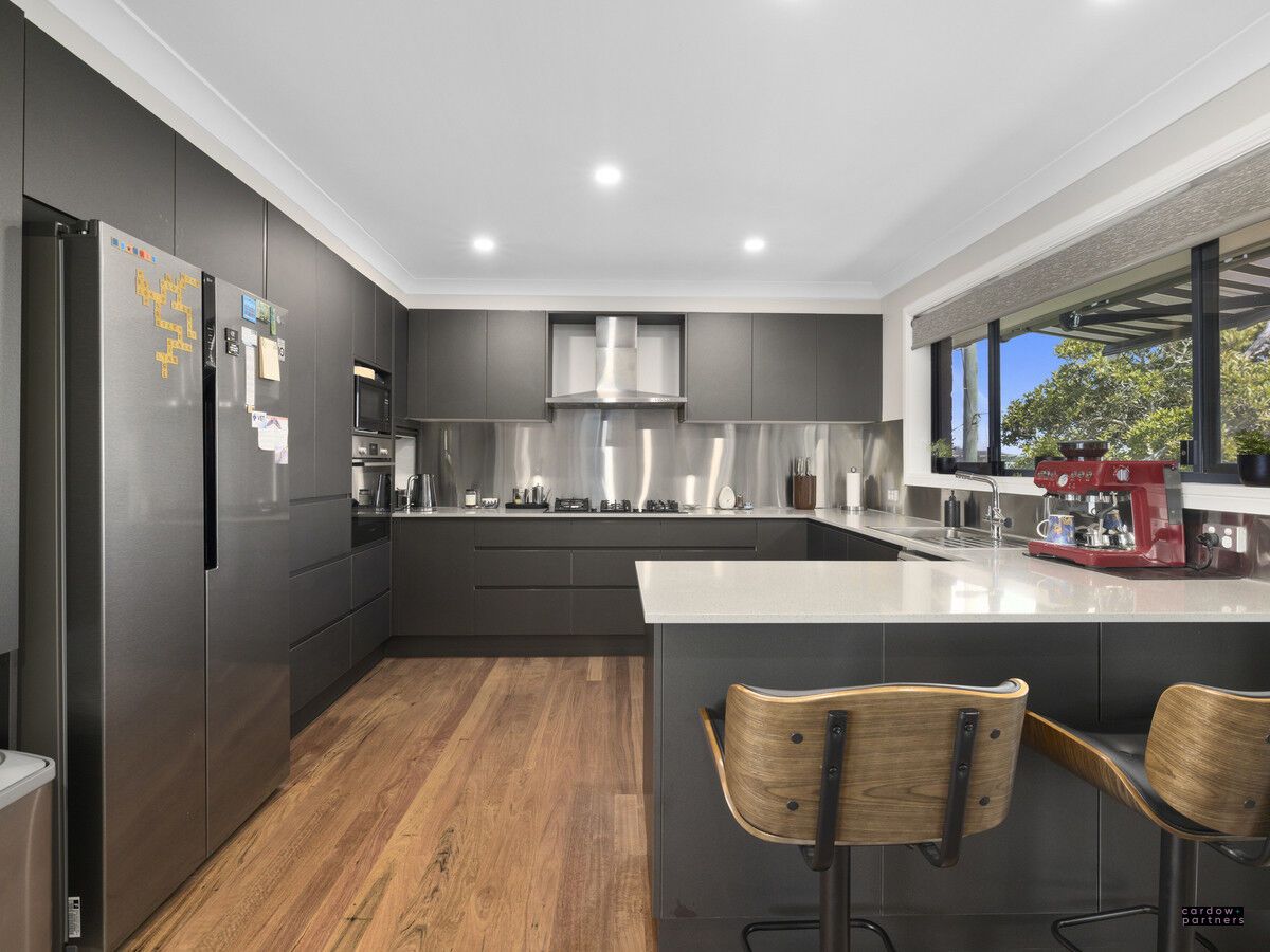 The well-appointed kitchen includes stone benchtops, soft-close drawers, a large five-burner gas cooktop and ocean views from the sink, making everyday tasks a pleasure. An office or study and front deck overlook Woolgoolga Main Beach through to Arrawarra Headland, while newly polished timber floors enhance the main living areas.