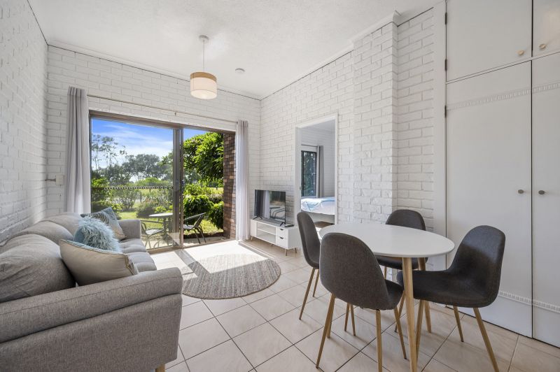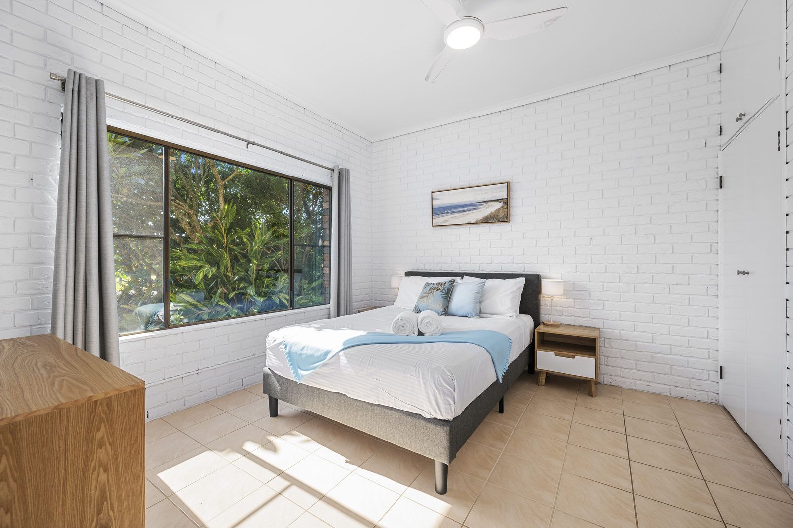 Allure provides upstairs living with the air-conditioned combined lounge dining, kitchen and main bedroom all enjoying views of Sandy Beach. The main bedroom has a queen bed, plenty of cupboard space and adjoins a two-way bathroom with shower + bath and a separate toilet. The second bedroom has 2 single beds. Enjoy the beach outlook from the lounge seating on the front patio or read the paper on the rear deck taking in the tropical garden. Enjoy Foxtel, DVD, Wi-Fi, Nespresso, electric BBQ, and a fully stocked kitchen along with an abundance of delightful ocean breezes.