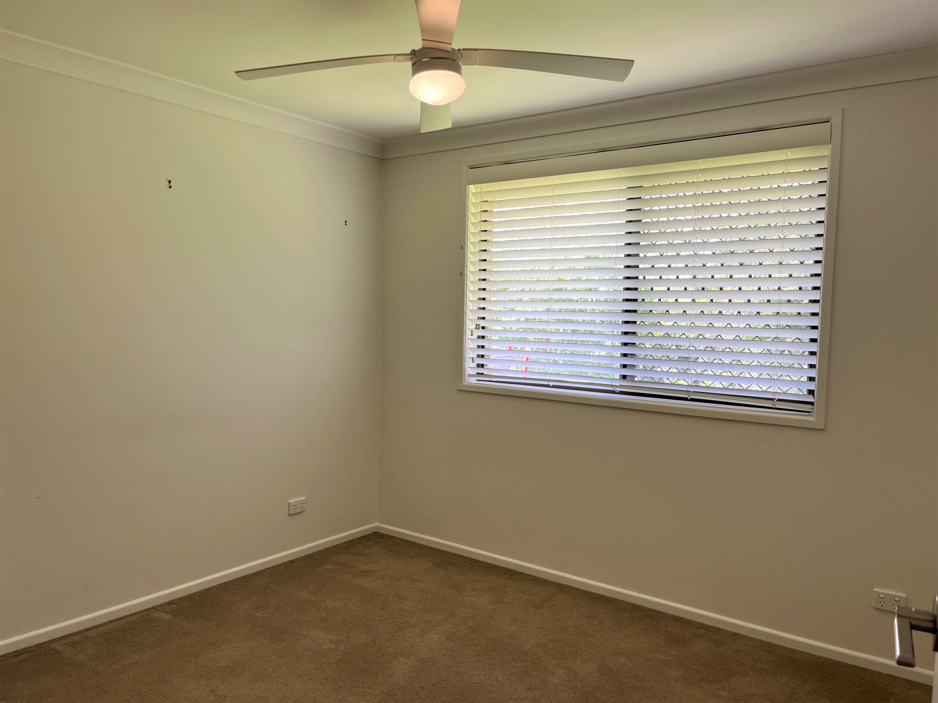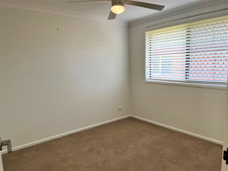 Inside, the home features three generously sized, carpeted bedrooms, each with built-in wardrobes and ceiling fans. The modern bathroom includes a separate toilet, and there is a large, separate laundry with an additional toilet and direct access to the backyard. The kitchen offers plenty of storage and flows into a bright and airy dining area equipped with air conditioning. Wooden laminate flooring runs throughout all living areas, adding warmth and style.