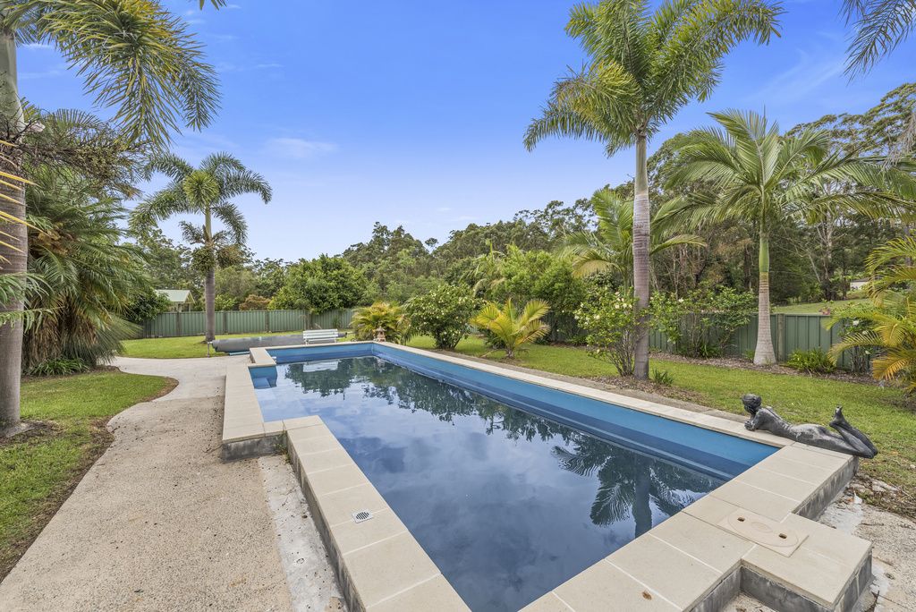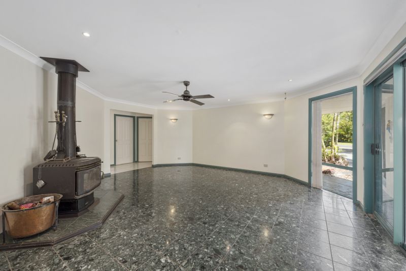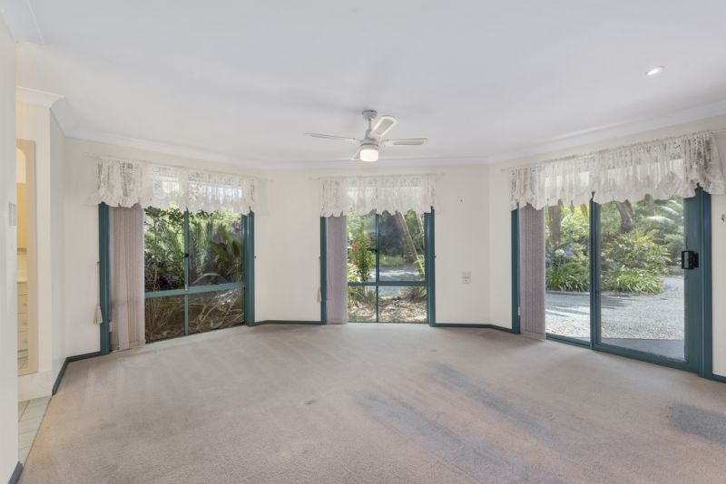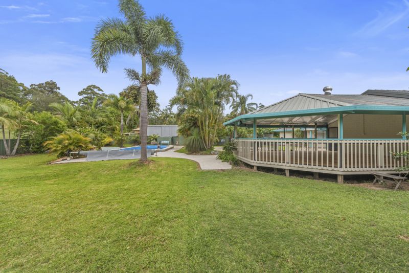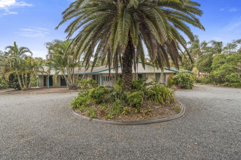 Located in a quiet & peaceful area in the picturesque Moonee Beach hinterland, only minutes' drive to the shopping centre, beach & estuary is this huge solid family home with established tropical gardens situated on 6879m2. This home has expansive flowing living and dining areas & a light filled kitchen. The master suite features a walk-in robe, 2 way bathroom & spa. All 3 other double bedrooms have built-ins. The office/5th bedroom has its own very handy external entrance & the self-contained studio can be open or closed to the main house, perfect for a teenager, parent or carer. It has a bedroom kitchenette, living space, bathroom & its own entrance with a carport. All the hard work & expense setting up this property has been done.