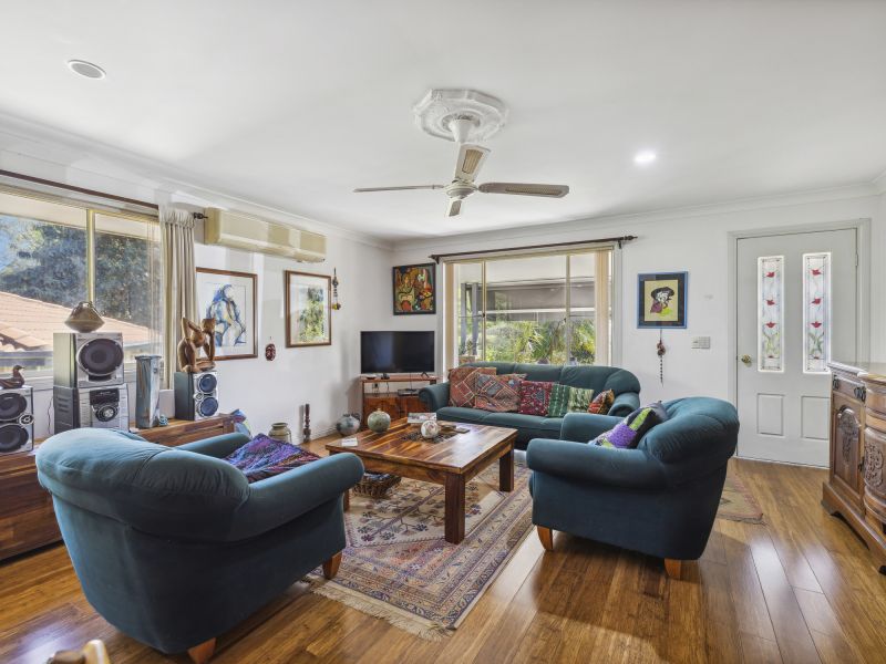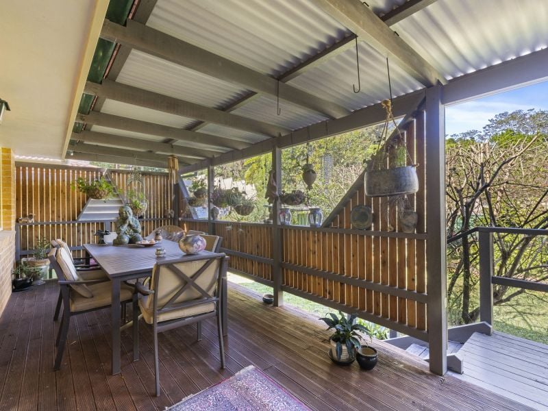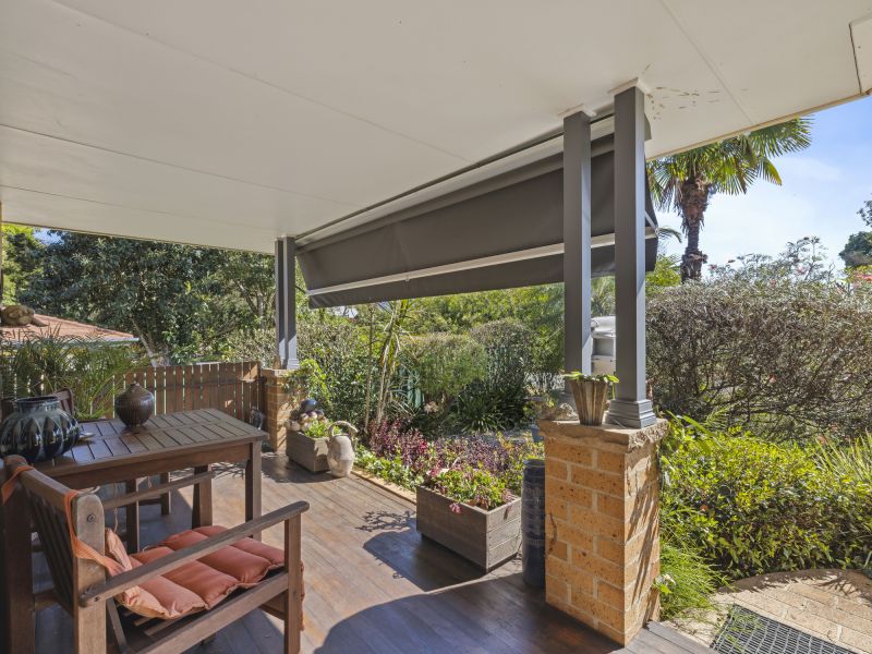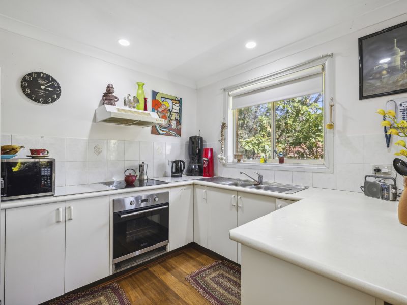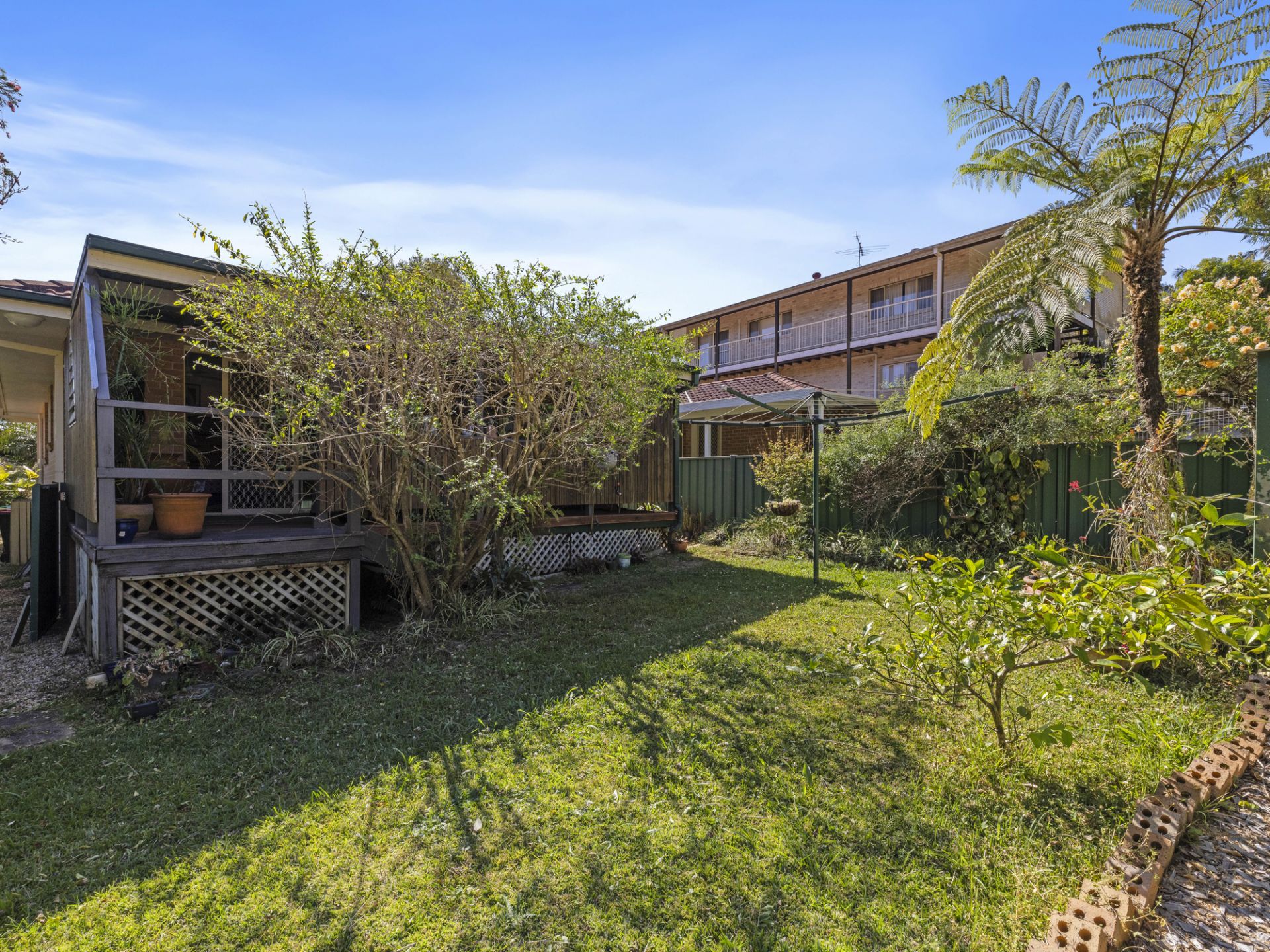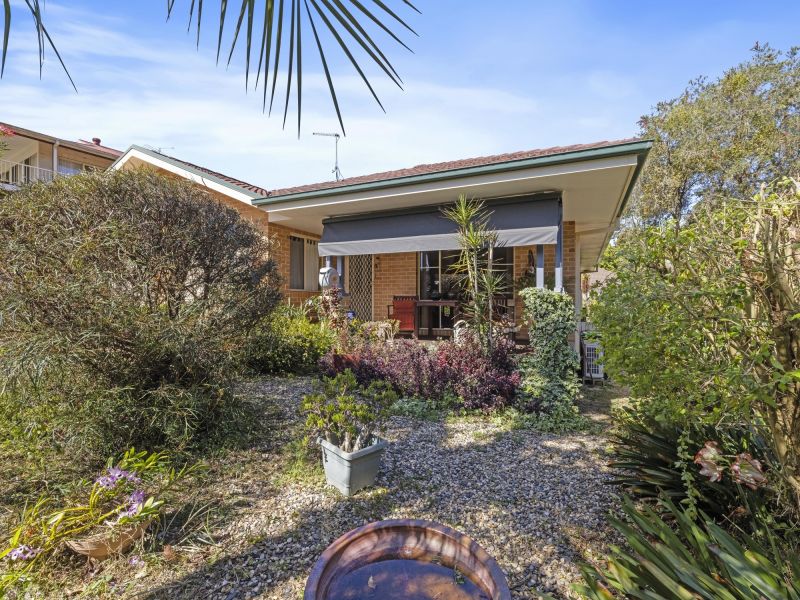 The master bedroom (4 x 3.5m) feels pleasantly large, with mirrored built-ins and large, screened glass sliding door leading onto the generous 3 x 8m covered deck - your own quiet retreat offering surprising privacy in this setting. The small garden, complete with a palm tree, is just enough to keep you happy in the garden but not chained to the maintenance.