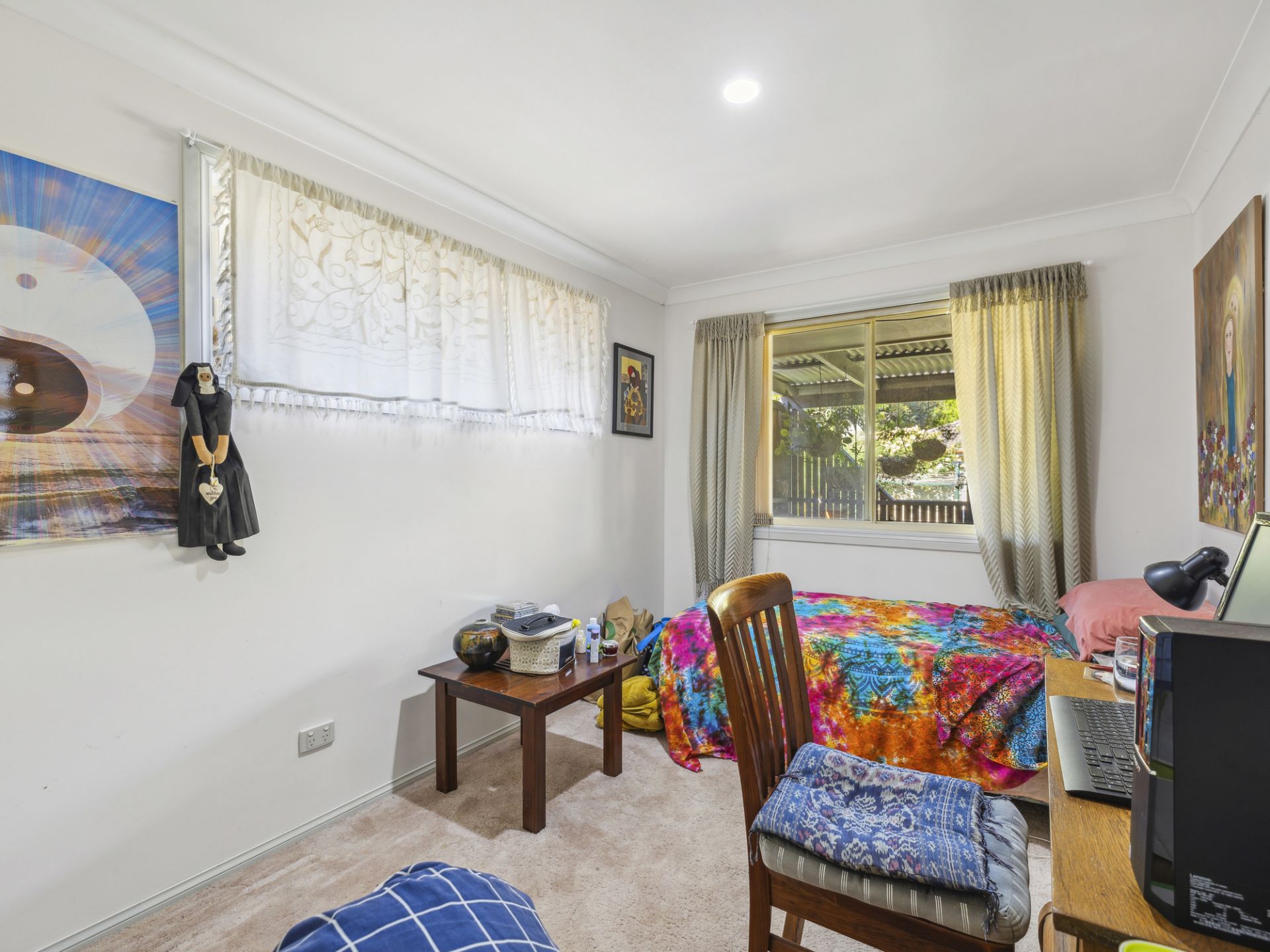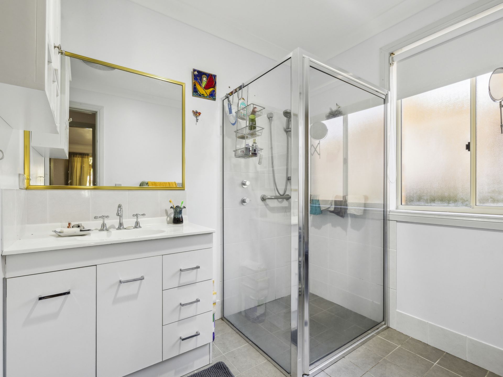 Up the hall, to the left, you'll find the bathroom with shower and vanity, next to the separate dual-flush toilet. The second bedroom (4m x 2.8m) is light and airy and has a view of the backyard.