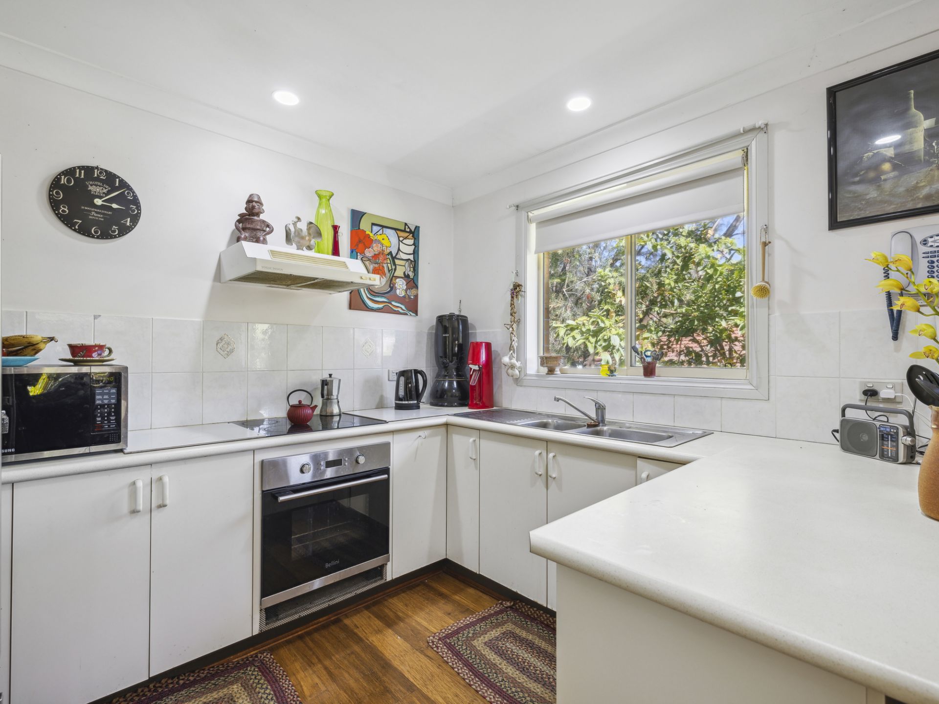 The duplex is laid out in the classic, townhouse style: carpeted, open-plan living (6 x 5.5m) and a kitchen (2.6 x 2.6m) on the right, and single, lock-up garage and laundry (with side access to the backyard) to the left. The kitchen offers reasonable bench space, an electric oven and cooktop, a double sink and double door pantry.