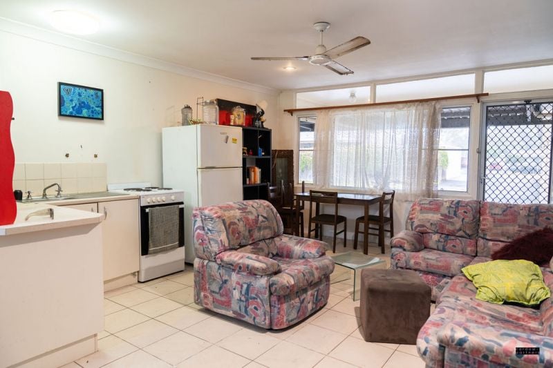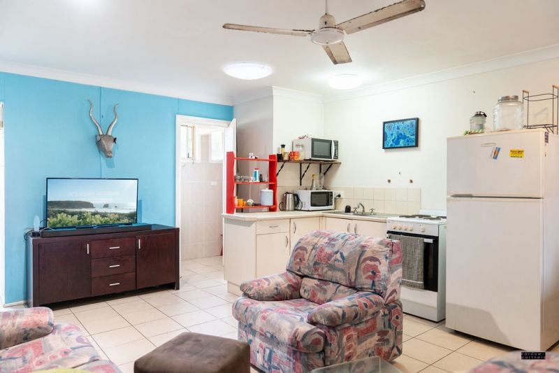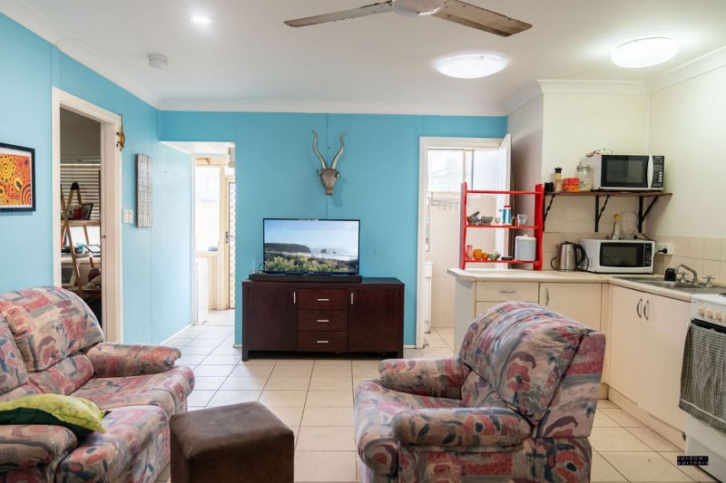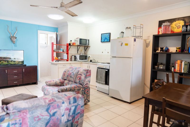 The unit features a compact yet functional kitchen flowing into the combined dining and lounge area. The bathroom, located off the kitchen, includes a shower, toilet and vanity. A communal laundry is situated at the end of the building with additional access from the fenced backyard.