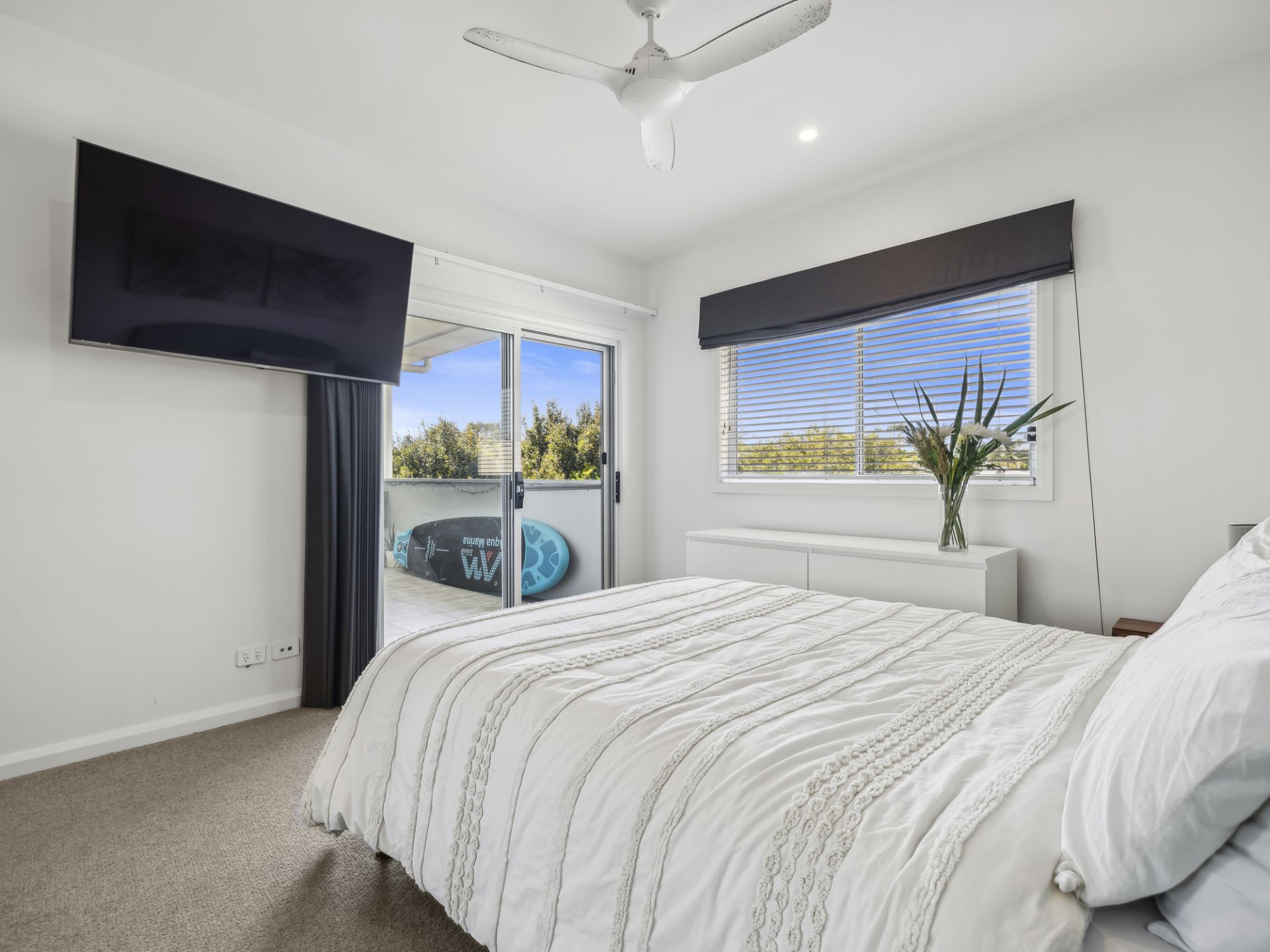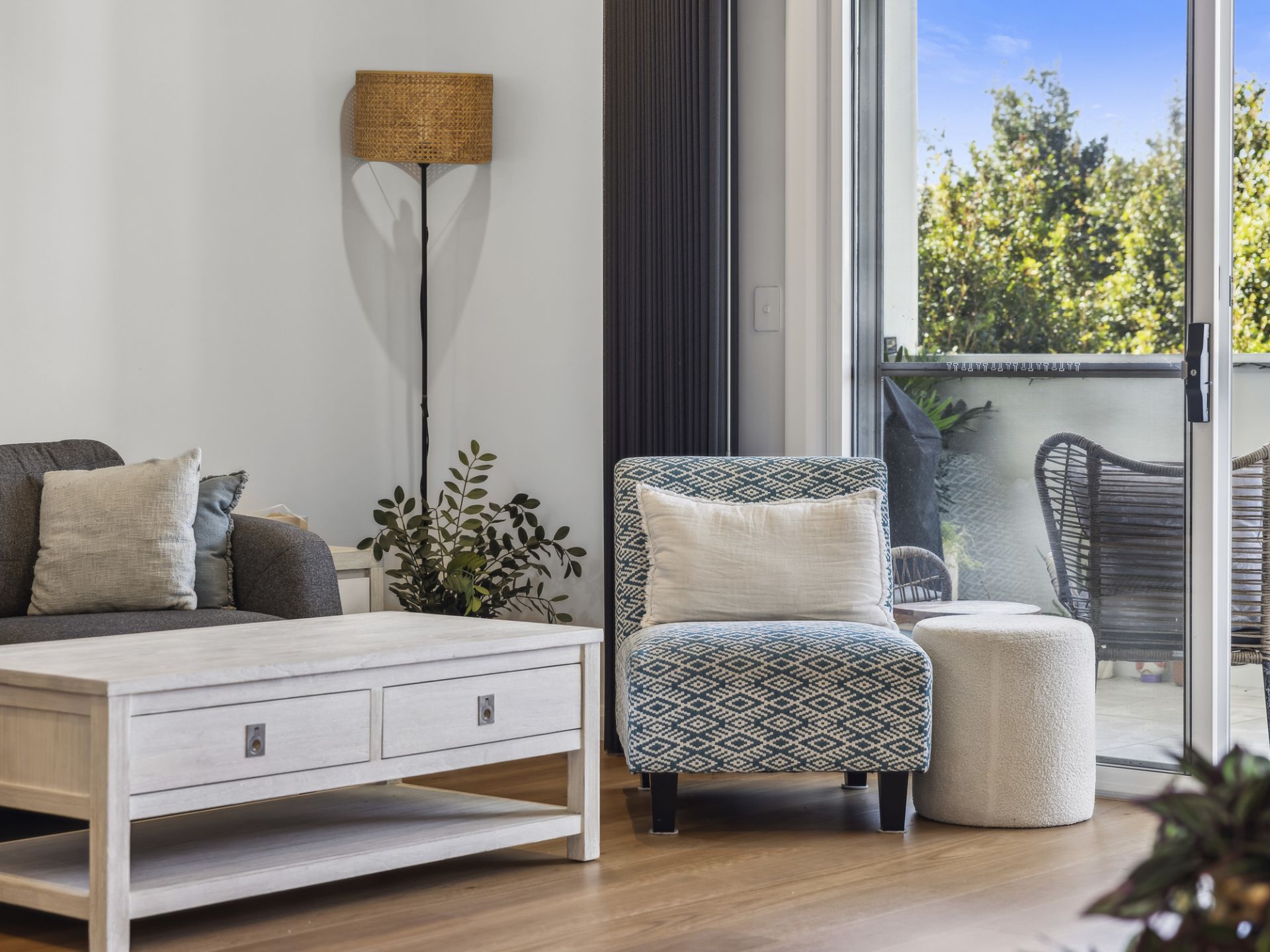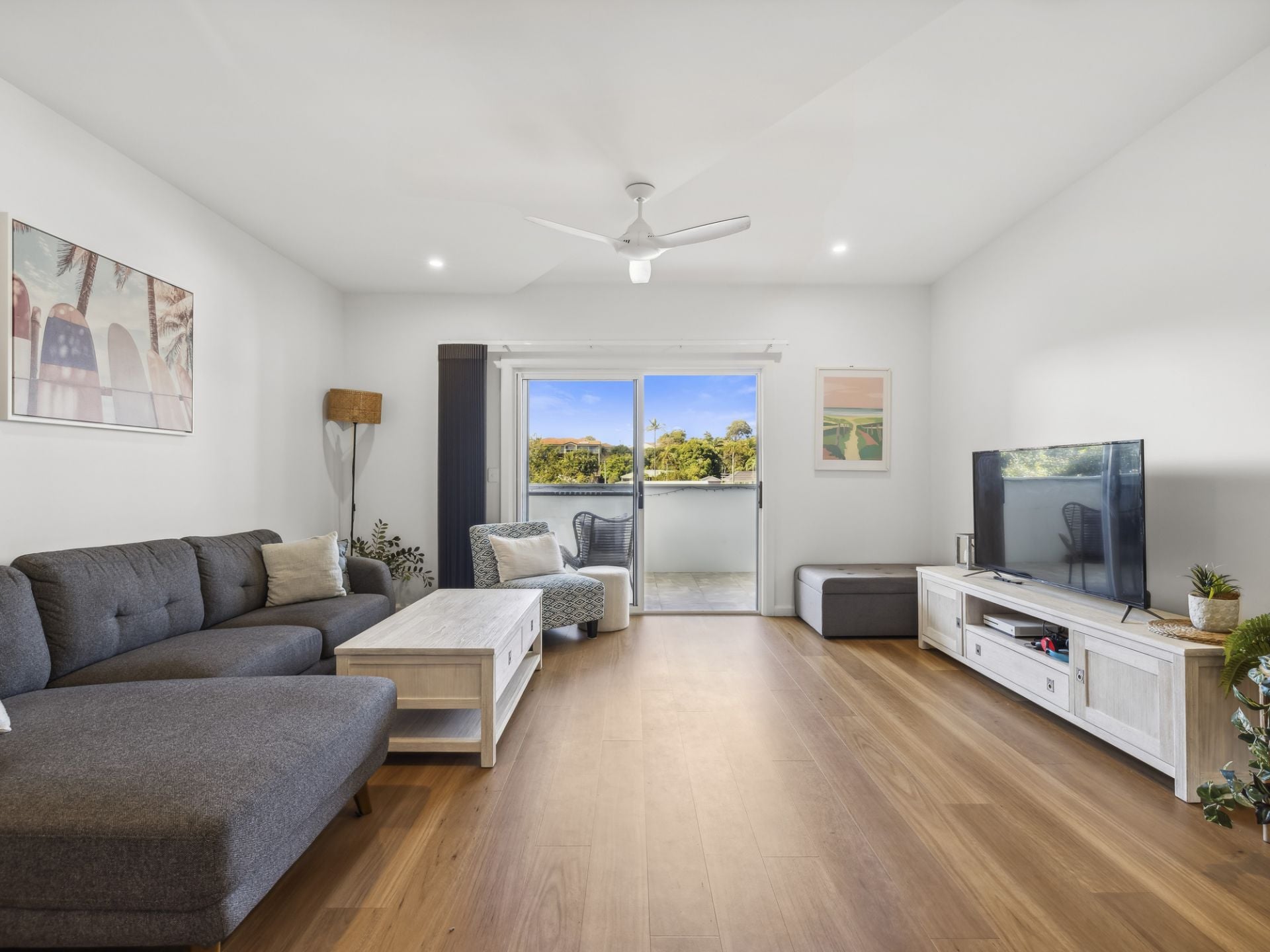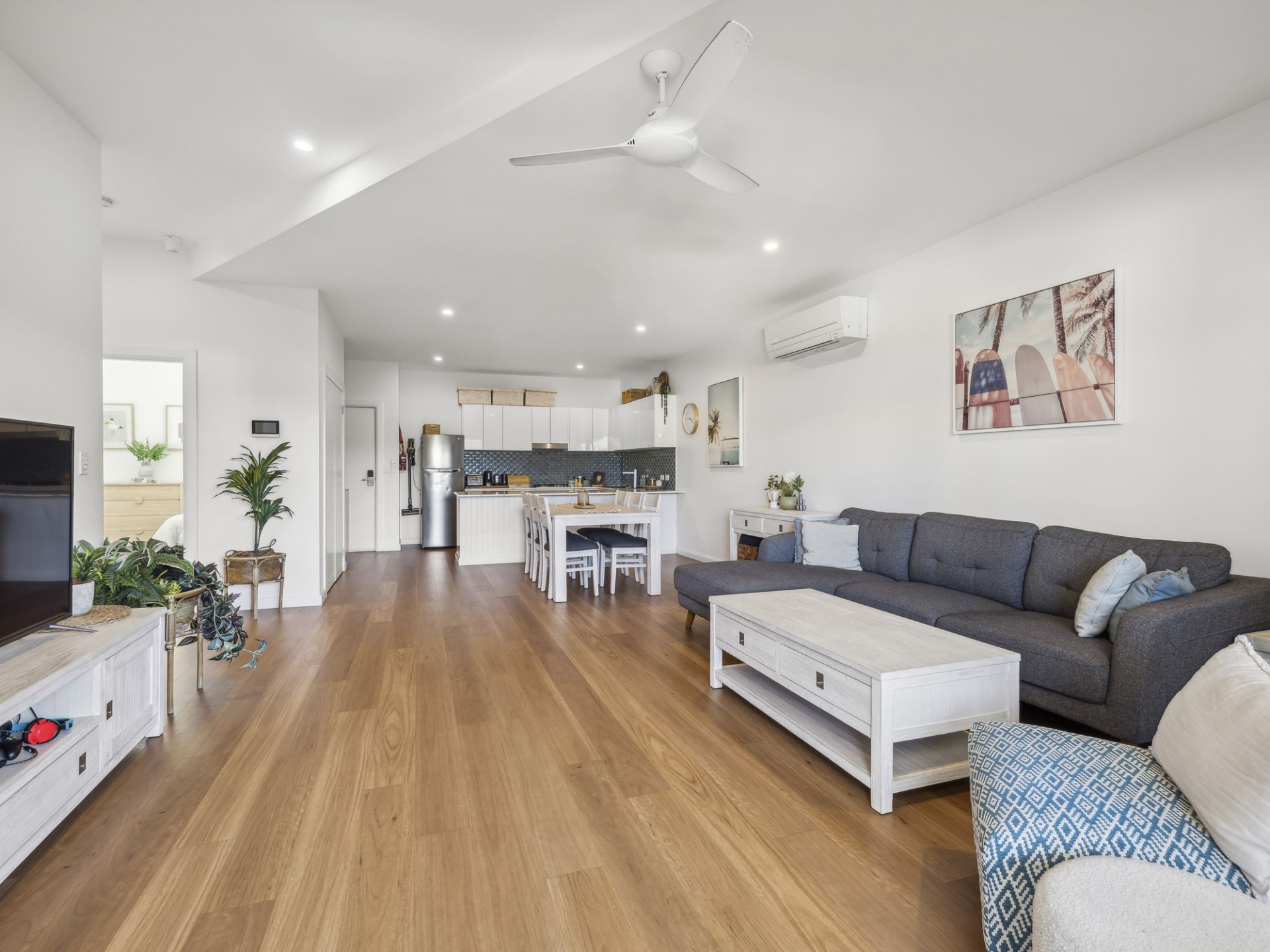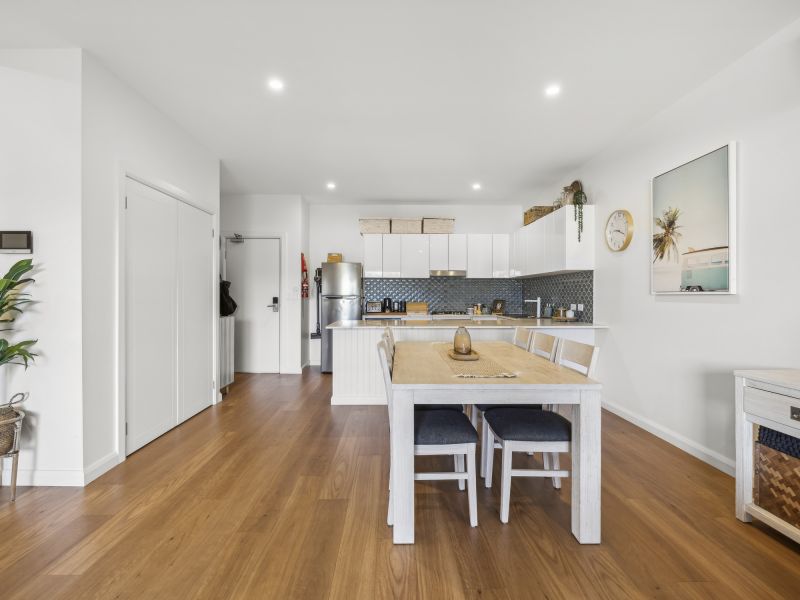 This stylish apartment is designed for comfort and convenience. The spacious master bedroom features an ensuite and robes, while the well-appointed kitchen boasts stone benchtops, a dishwasher, and a gas cooktop. With neutral-toned walls and plantation shutters, the apartment exudes a coastal chic vibe, complemented by timber-look flooring and ceiling fans. The open-plan living area is flooded with natural light and creates a seamless flow between indoor and outdoor spaces, including a balcony makes it ideal for enjoying the sun and sea breezes.