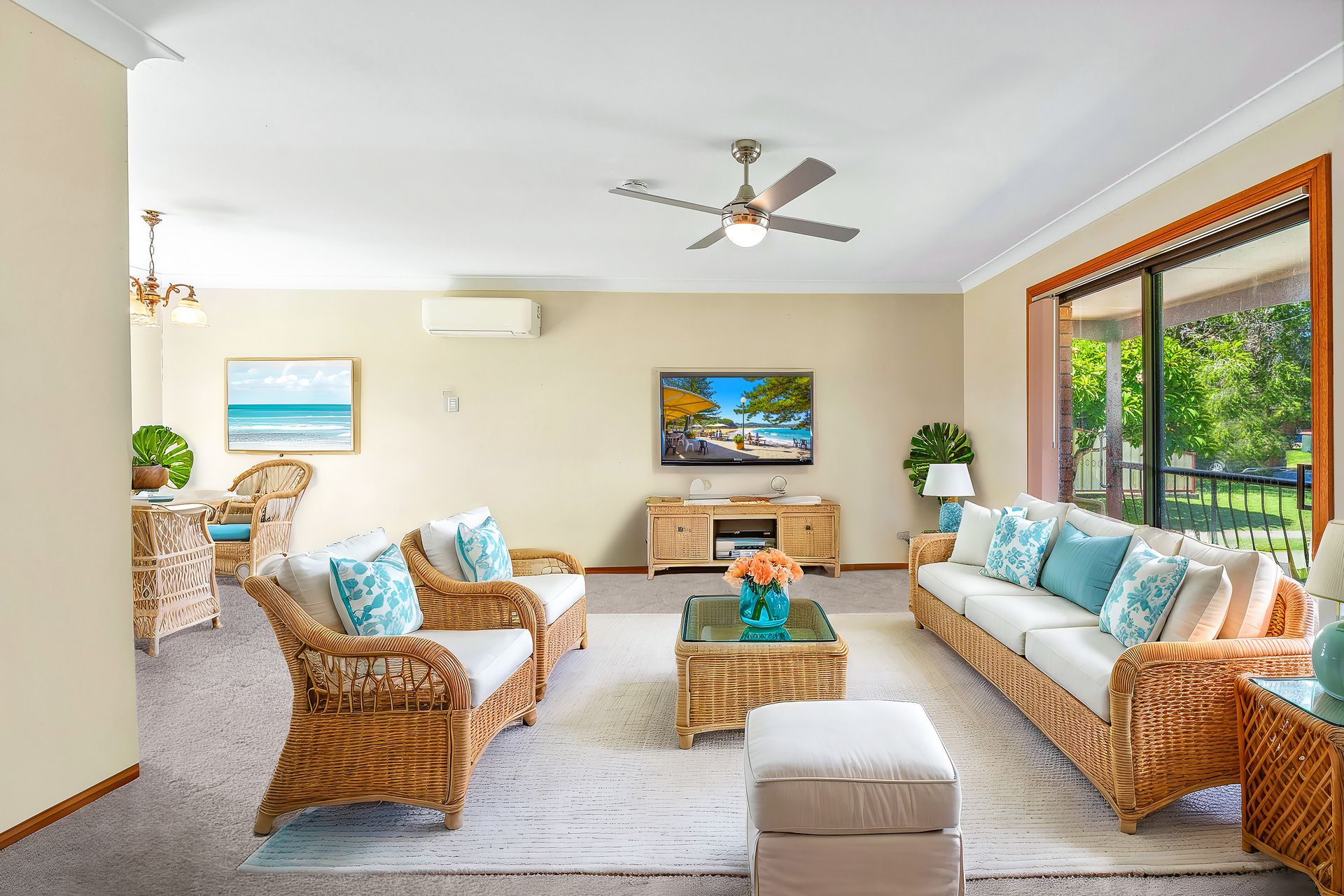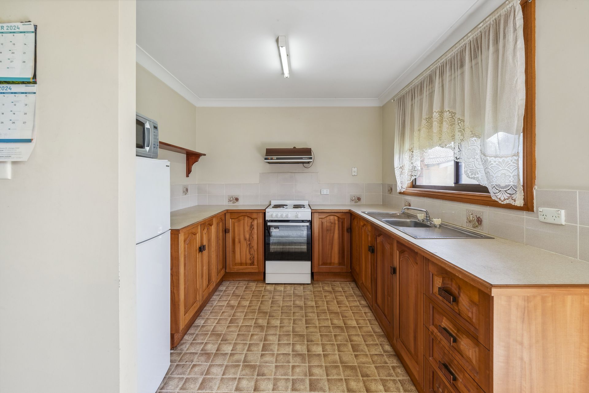 Inside, you'll find an open plan lounge and dining area that is light-filled and inviting, complete with reverse cycle air conditioning and a gas bayonet for extra heating during the cooler months. The functional kitchen comes equipped with an electric cooktop and oven, perfect for preparing meals with ease.