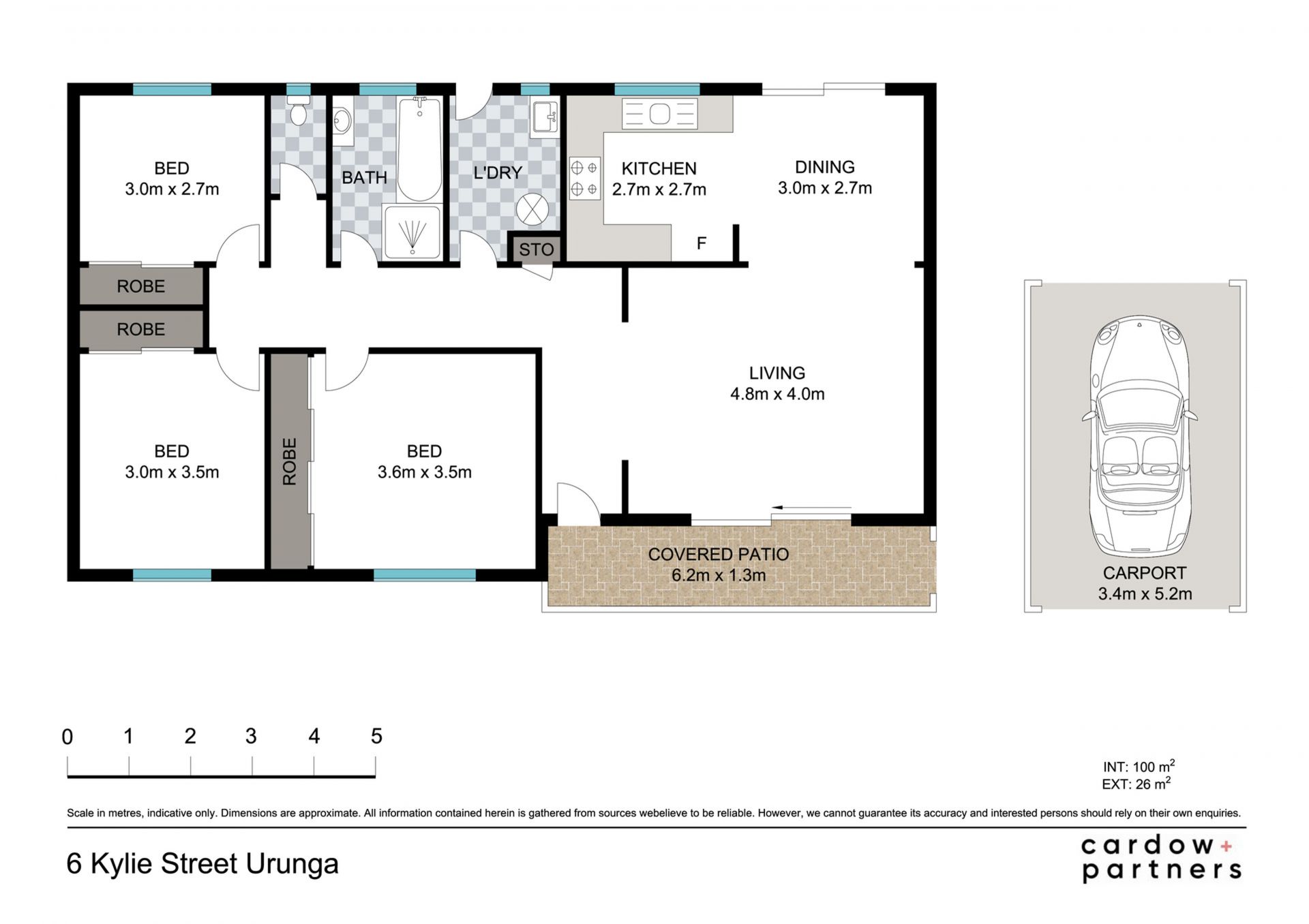 The home features three good-sized bedrooms, all with built-in robes to provide ample storage. The tiled bathroom includes a separate toilet for added convenience. The spacious internal laundry offers additional storage space and functionality.