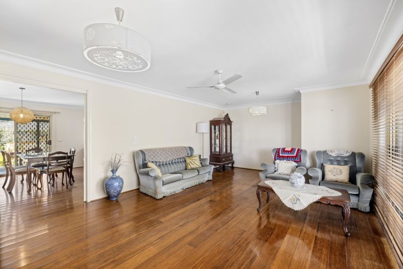 The kitchen & dining area opens onto a covered outdoor area, overlooking the stunning in-ground pool to enjoy on those warm summer days. The level 764 sqm block has a fully fenced backyard with established gardens and a drive through garage.