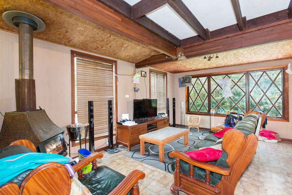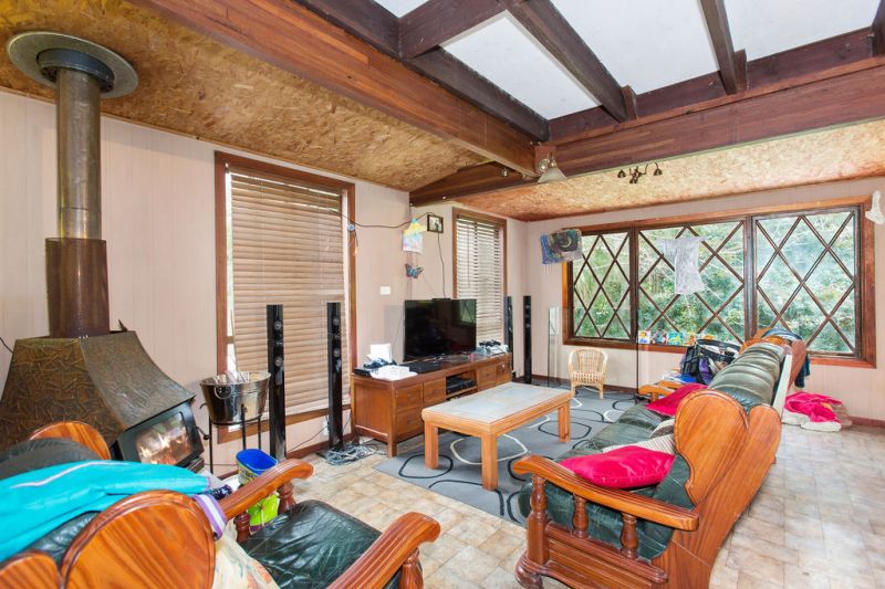 This character filled timber home comprises of a master bedroom with built in robes, 2 bedroom loft upstairs, older style kitchen, open plan living with a cosy wood fireplace and a lovely wrap around verandah. It boasts a studio with walk in robe + ensuite downstairs which is ideal for guests.