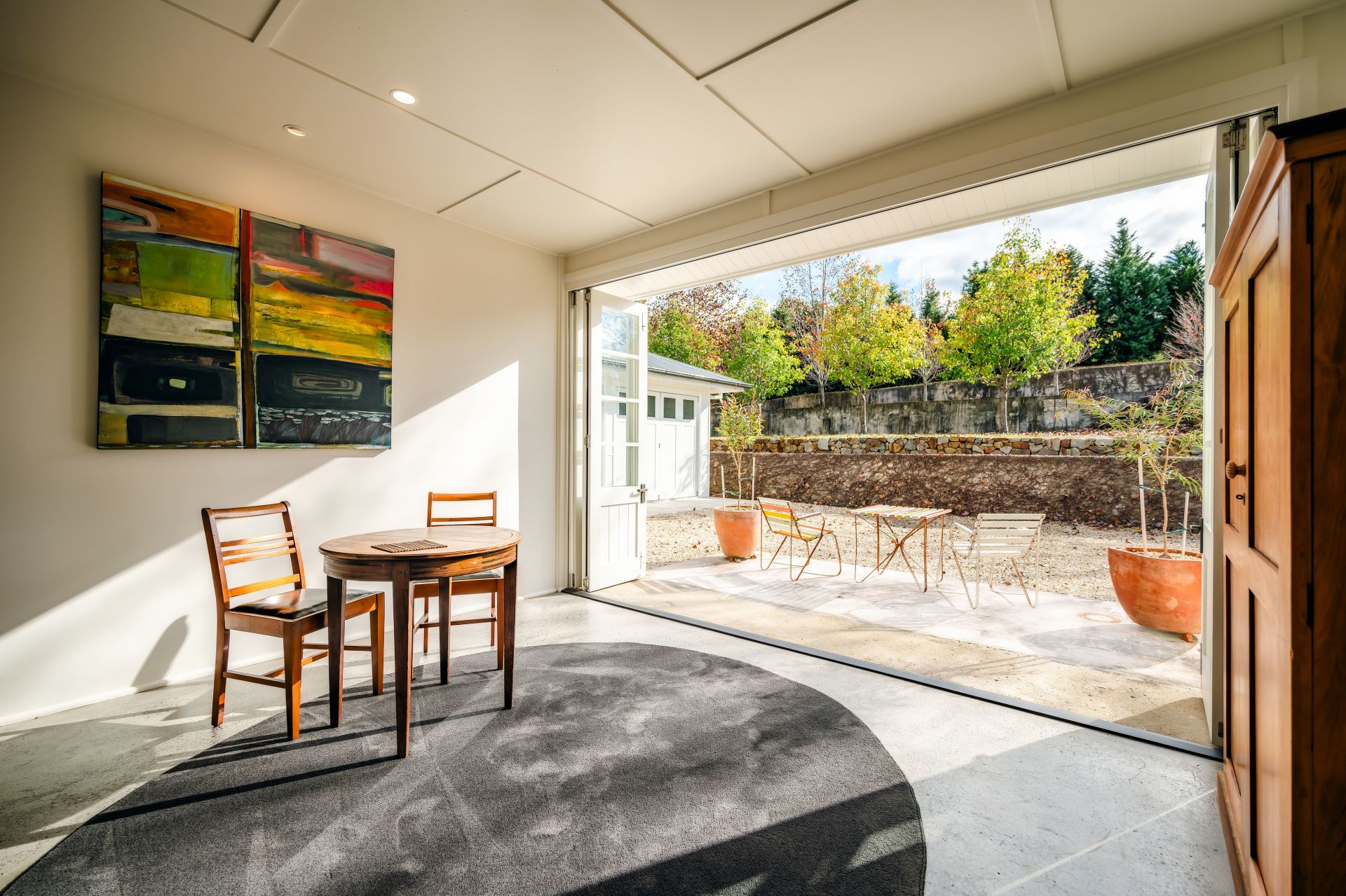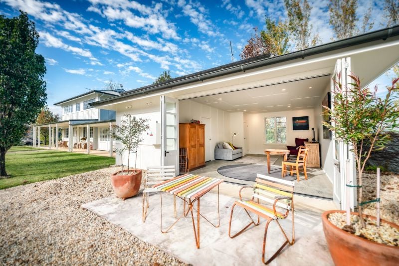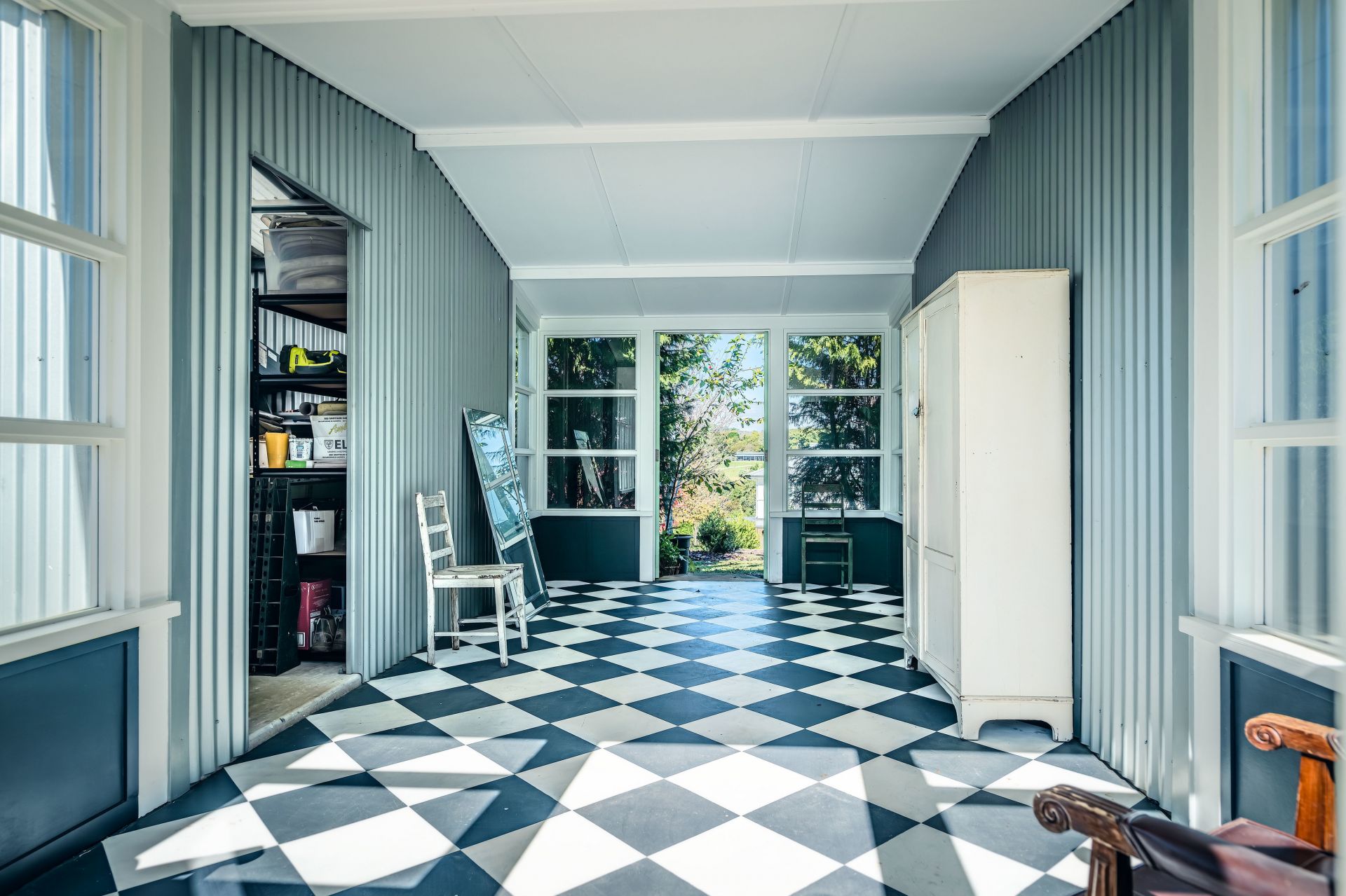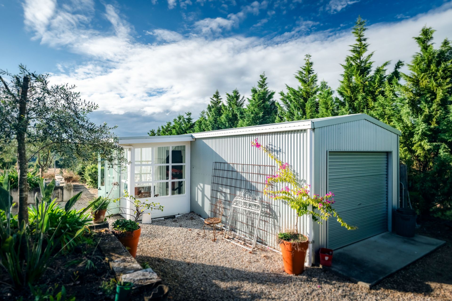 There is a fantastic garage with 2 sets of ''old style'' wooden bifold garage doors and a convenient rear roller door. Plus some great sheds connected by a work room, aptly named 'the flower house' by the current owners