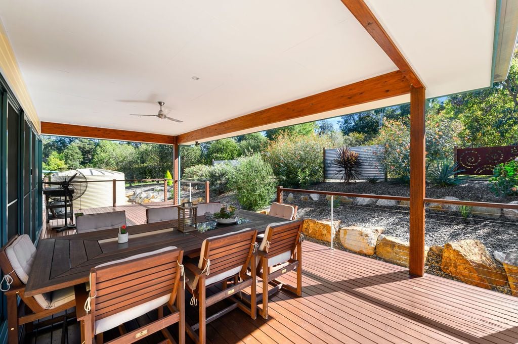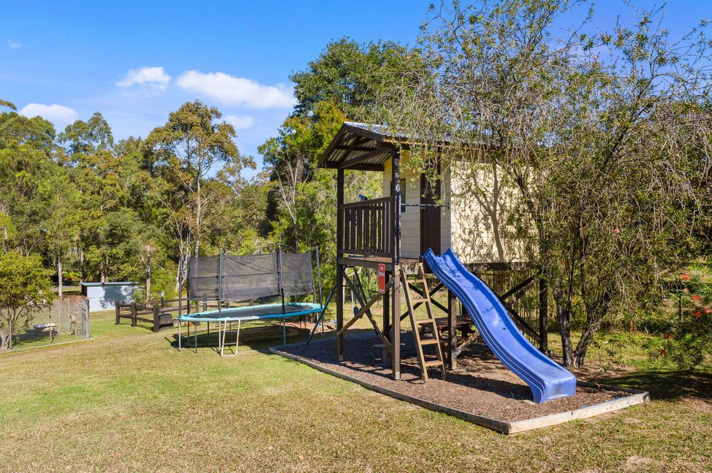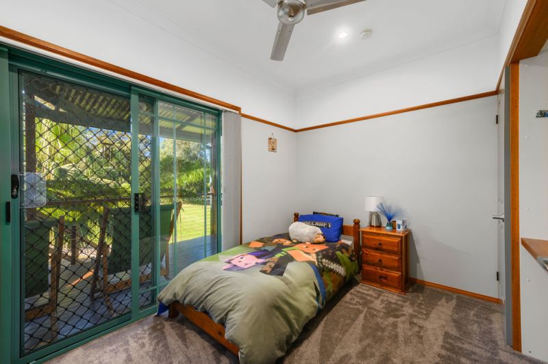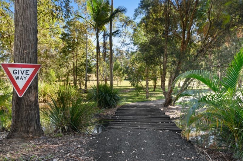 The home offers a rewarding lifestyle, it is fully fenced with a huge 6x12.8m lock up garage + machinery shed. It offers a custom built cubby house perfect for the kids to play, chicken shed, vegetable gardens and features a lovely natural water courseway with bridge.