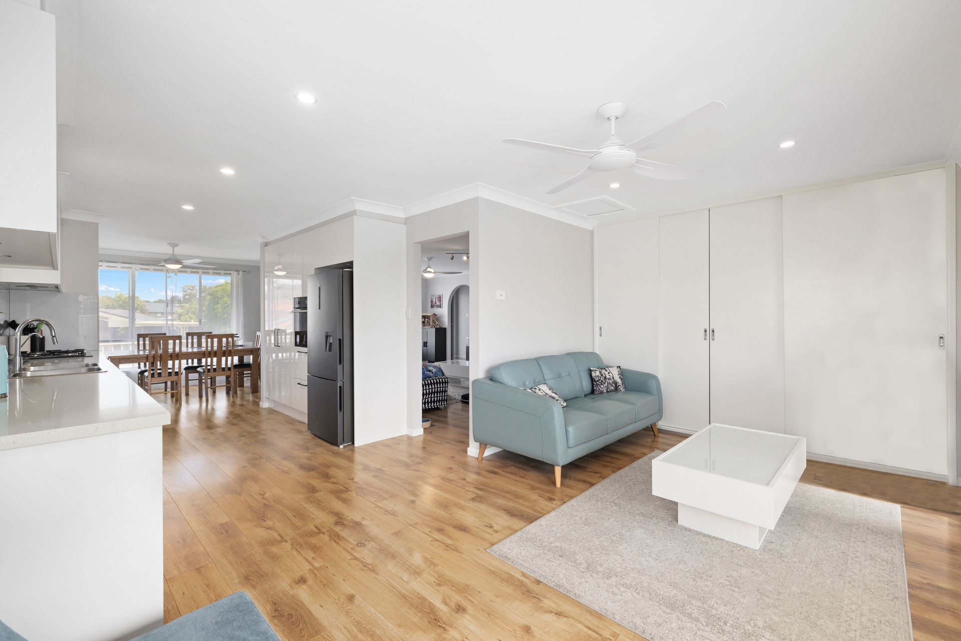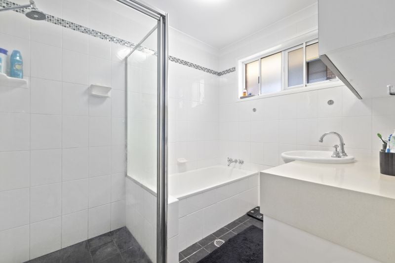 You will be welcomed by the spacious open plan lounge/ dining area complete with air conditioning & ceiling fans. The sleek modern kitchen will suit the most disconcerting buyer, with ample storage, granite benchtops, dishwasher & gas cooktop.