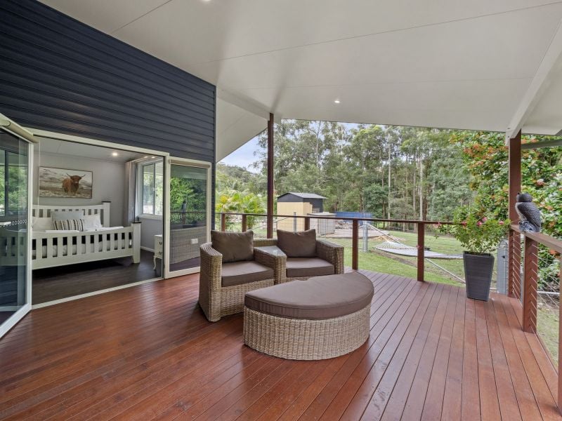 The large wrap around deck featured at Hiddlestons Retreat can be accessed from both bedrooms to make it that little bit easier to sit back, relax, enjoy a glass of wine or a cup of tea whilst taking in the peace and serenity with the natural bird life. While the property is nestled within nature it is just minutes from Moonee Beach Market, restaurants, cafes and an easy 10-minute drive to pristine waterways, beaches and headland walks.